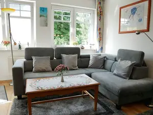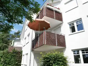 Die moderne, helle NICHTRAUCHER-3-Raum-Ferienwohnung befindet sich im 1. OG. und verfügt über einen sonnigen Balkon zur Südseite. Es erwartet Sie ein gemütlicher Wohn-Essbreich mit Smart-TV , Radio mit CD-Player und DVD-Player. Im Wohnbereich befindet sich auch die offene Wohnküche mit Geschirrspüler, Cerankochfeld, Backofen, Kühl-/Gefrierkombination, Mikrowelle, Kaffeevollautomaten, Toaster, Wasserkocher und Kochgeschirr. Gut schlafen werden Sie in den zwei separaten Schlafzimmern ( 1 x Doppelbett mit Flat-TV und 1 x zwei Einzelbetten). Das Bad ist mit Dusche, WC und Fön ausgestattet. Der Fußboden besteht aus Echtholz-Streifenparkett. Die Erstausstattungen Bettwäsche und Handtücher sind im Preis enthalten.Waschmaschine und Wäschetrockner zur Gemeinschaftsnutzung befinden sich in einem separaten Raum des Hauses im Erdgeschoss.