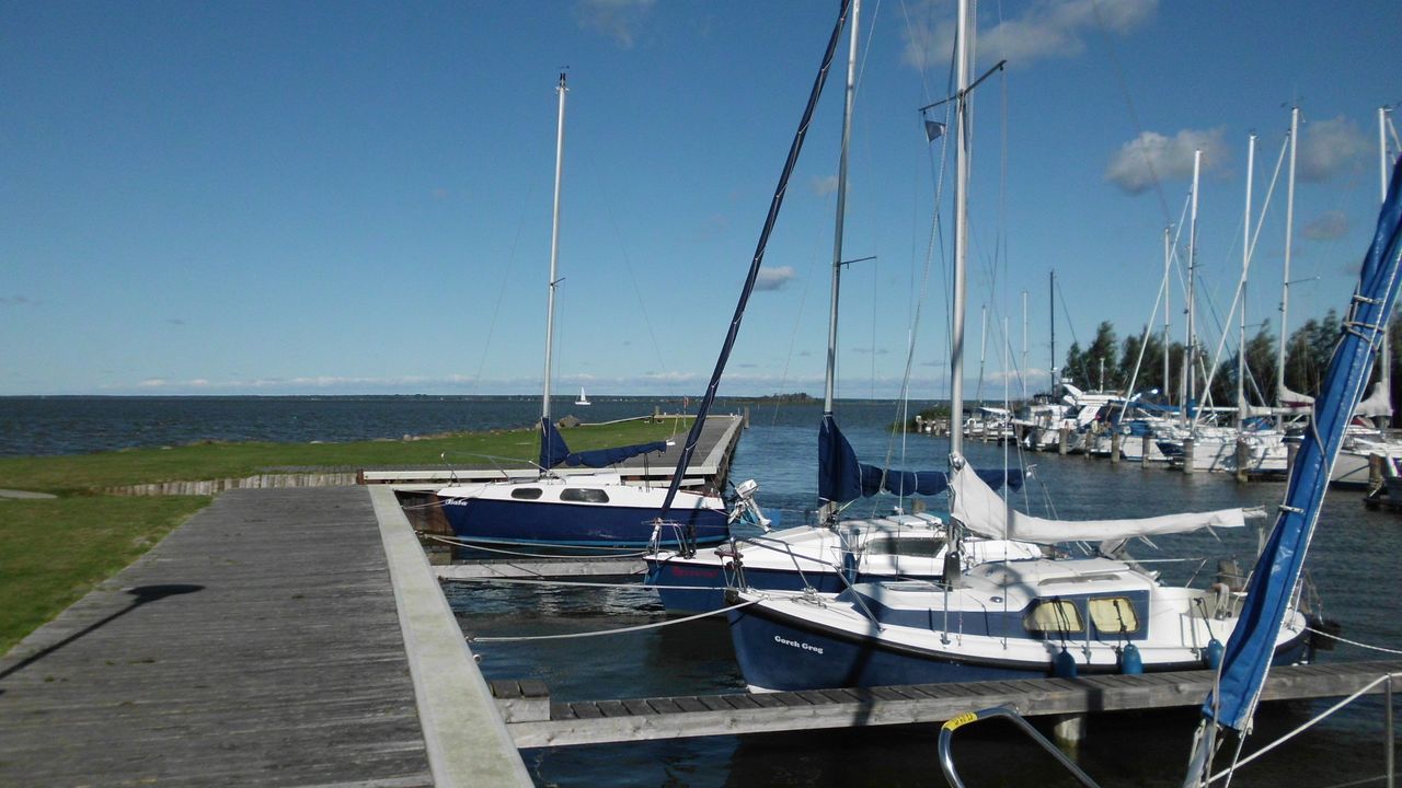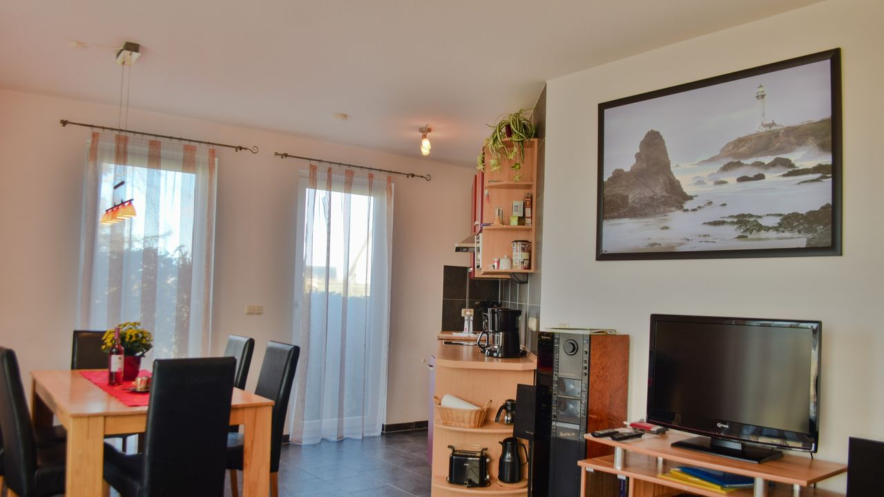Das Ferienhaus liegt direkt im Hafenbereich und überzeugt mit einem freien Blick auf den Saaler Bodden. Auf 85 m² Wohnfläche finden bis zu 6 Personen ausreichend Platz.Zur stilvoll eingerichteten und vollständig ausgestatteten Unterkunft gehören ein helles, gemütliches Wohnzimmer mit offener Einbauküche, ein Badezimmer mit Dusche, WC und Sauna sowie ein weiteres Bad mit Badewanne und WC. Zwei behagliche Schlafzimmer bieten Schlafmöglichkeiten für 4 Personen, zusätzlich gibt es im Alkoven ein Doppelbett für 2 Personen (für ältere Gäste weniger geeignet). Im Erdgeschoss sorgen elektrische Rollläden für zusätzlichen Komfort. Das Ferienhaus verfügt weiterhin über Insektenschutzgitter im Erd- und Obergeschoss.