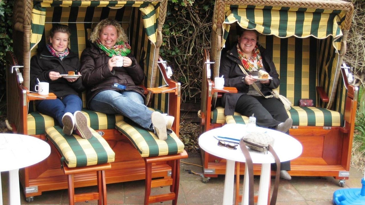 Zur Wohnung gehört ein Strandkorb aus der Südterrasse im 1. Stock. Es stehen Liegen für Sie bereit,