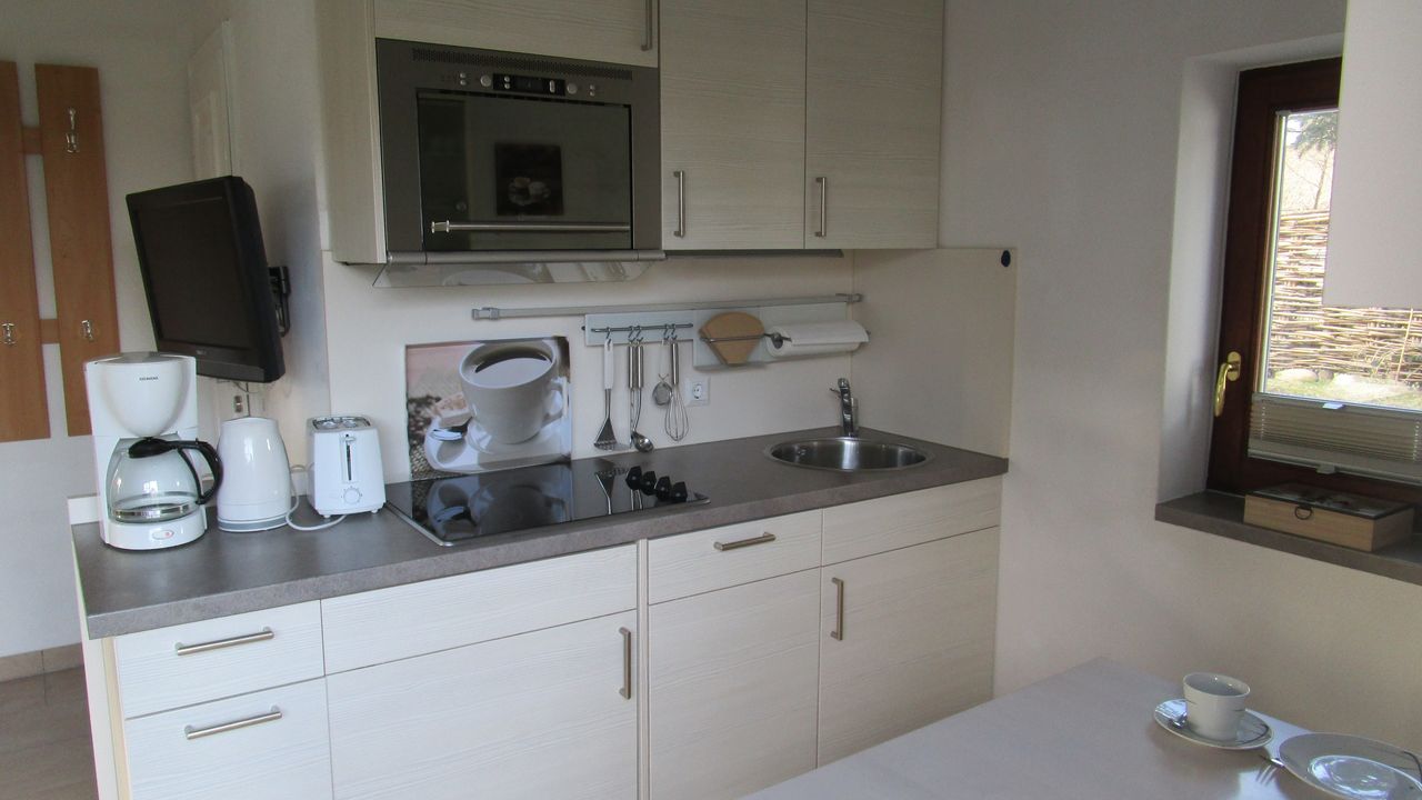 Die Ferienwohnung für 2 Personen befindet sich in einen kleinen Häuschen . Im EG befindet sich der Wohnraum mit Flachfernseher, das Bad mit WC, sowie die Küchenzeile. Im OG ist der Schlafraum mit Flachfernseher. Die Küchenzeile ist komplett ausgestattet wie Geschirrspüler, Kaffeemaschine, Toaster , Wasserkocher usw. Telefon und WLan in und an der Ferienwohnung kostenlos.