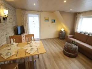 Die Ferienwohnung mit Balkon verfügt über eine Küche mit Spülmaschine, Kaffeemaschine, Wasserkocher, Sat-TV, Bettwäsche und Handtücher. Drei Zimmer Wohnung mit Balkon und Seesicht ca. 60qm, Carportstellplatz, Maximalbelegung 4 Personen.Beschreibung der Unterkunft