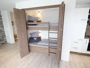 Die Ferienwohnung mit Balkon verfügt über eine Küche mit Spülmaschine, Kaffeemaschine, Wasserkocher, Sat-TV, Bettwäsche und Handtücher. Zwei Zimmer Wohnung mit Balkon und Seesicht ca. 65qm, Kinderschlafkojen im Wohnbereich, Carportstellplatz, Maximalbelegung 4 Personen.Beschreibung der Unterkunft