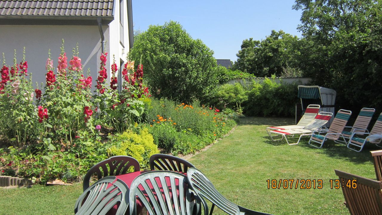 Die Ferienwohnung liegt an der Südseite des Hauses und ist daher hell und sonnig. Der blumige Garten steht mit Liegen, Strandkorb und Sitzplätzen allen Gästen zur Verfügung.