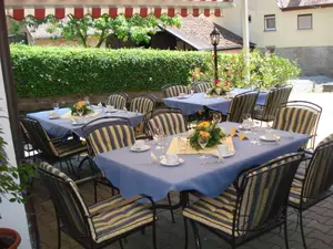 Auch ums leibliche Wohl braucht er sich nicht zu sorgen: Der erwähnte "Katzensprung" reicht, um das Frühstück am gedeckten Tisch im Stammhaus "Zum Falken" serviert zu bekommen.