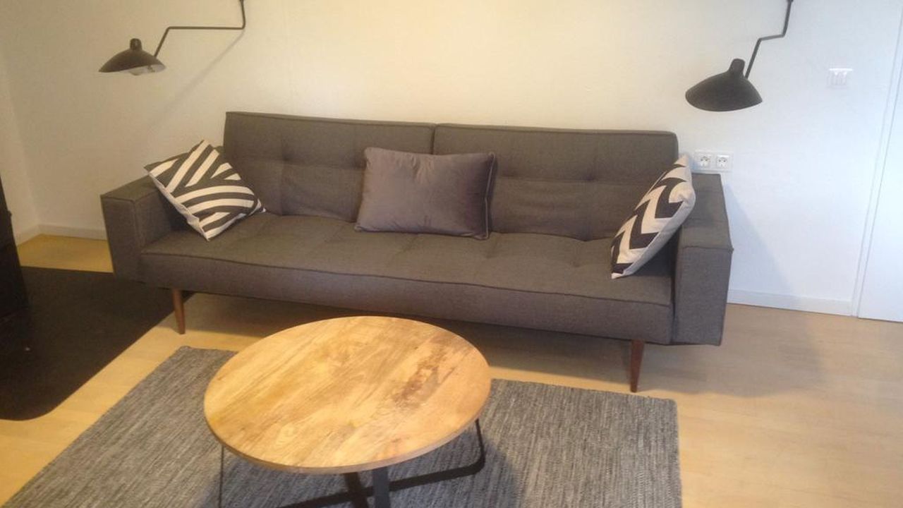 im Wohnzimmer ein Sofa mit bis zu zwei Schlafplätzen (Taschenfederkernmatratze plus separate, vorhandene Matratzenauflage, Liegefläche ca 110*200)