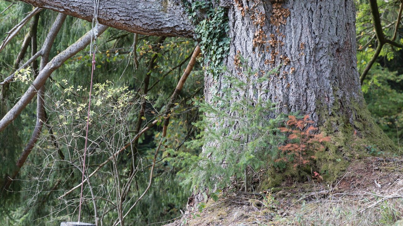 Am Wegweiser sehen Sie ein Schild zum „Schweizerhaus“.