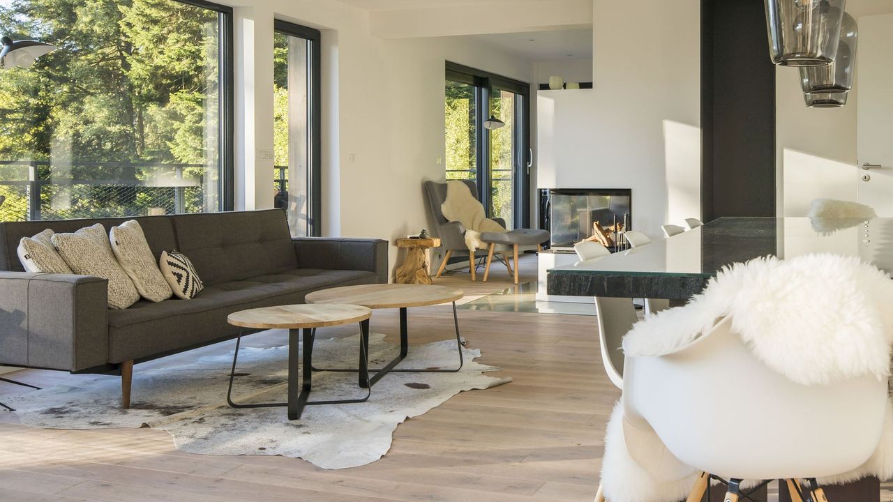 - Dreiseiten-Panoramakamin von Brunner im Wohnzimmer