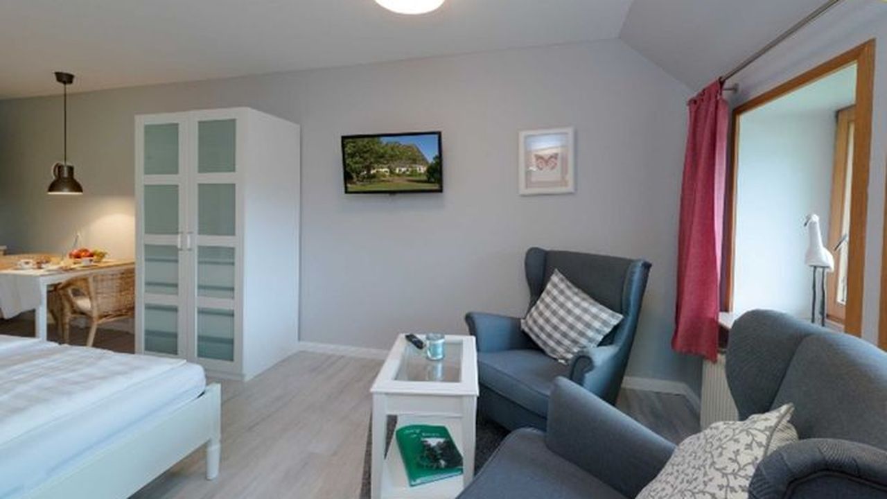 Die 25qm großen Appartements (geeignet für 2 Personen) wurden im April 2016 renoviert und liegen im Parterre des 300 Jahre alten Fachwerkbauernhauses. Sie verfügen über ein Wohn-Schlafzimmer mit Doppelbett, einer Sitzecke mit Sessel und TV, einer Kochnische und einem separaten Bad mit Dusche und WC. Hunde auf Anfrage.Das 25qm große Appartements (geeignet für 2 Personen) wurde im April 2016 renoviert und liegt im Parterre des 300 Jahre alten Fachwerkbauernhauses. Es verfügt über ein Wohn-Schlafzimmer mit Doppelbett, einer Sitzecke mit Sessel und TV, einer Kochnische und einem separaten Bad mit Dusche und WC. Hunde auf Anfrage.