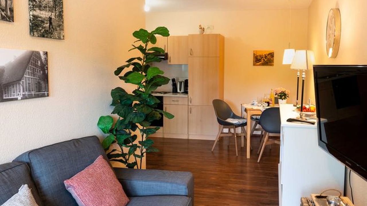 Wohnen Sie in einer großzügigen 45 qm Ferienwohnung (geeignet für bis zu 3 Personen) im Parterre des 300 Jahre alten Fachwerkbauernhauses mit separatem Schlafzimmer mit Doppelbett. Ausgestattet mit einer Küche, Sitzecke mit Schlafsofa und TV, Dusche/WC. Hunde auf Anfrage.Wohnen Sie in einer großzügigen 45 qm Ferienwohnung (geeignet für bis zu 3 Personen) im Parterre des 300 Jahre alten Fachwerkbauernhauses mit separatem Schlafzimmer mit Doppelbett. Ausgestattet mit einer Küche, Sitzecke mit Schlafsofa und TV, Dusche/WC. Hunde auf Anfrage.