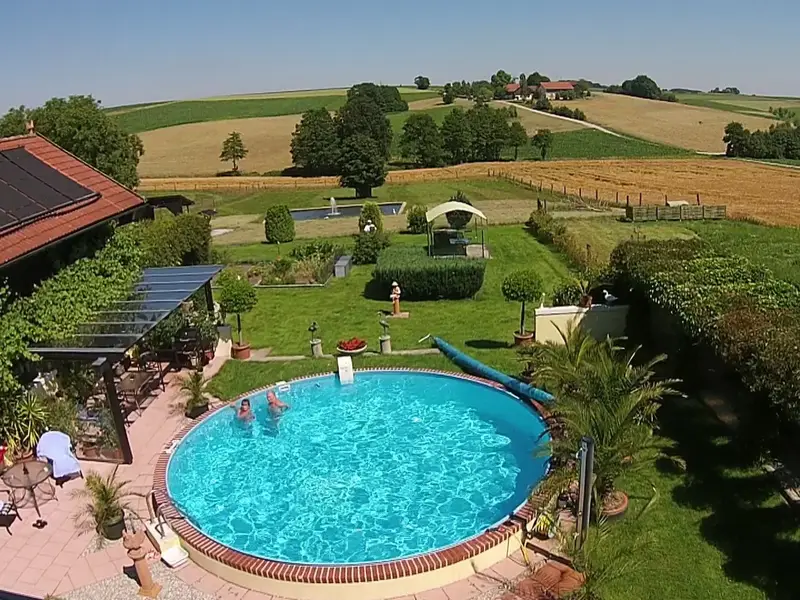 Vom Mai - Oktober steht unseren Gästen ein großzügiges, beheiztes Schwimmbad mit Gegenstromanlage zur Verfügung.