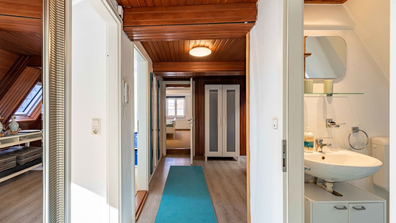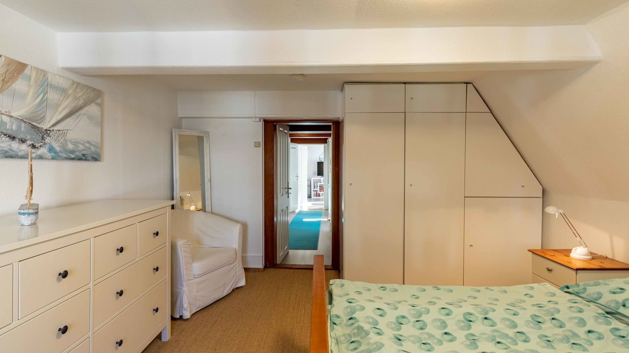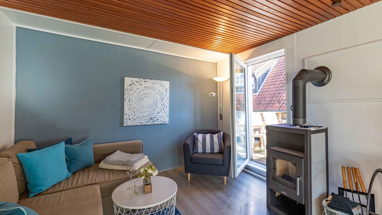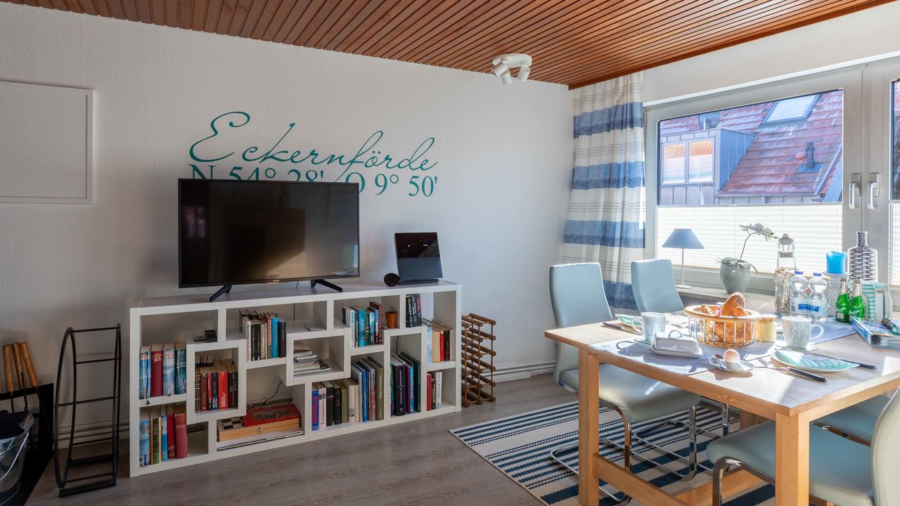 Genießen Sie zu zweit, mit Ihrer Familie oder Ihren Freunden (max. 6 Personen) unsere Ferienwohnung "Oberdeck" im 2. Stock unseres historischen Altstadthauses "Zum Seiltänzer" in Eckernförde an der Ostsee. Gerne können Sie auch Ihren Hund mitbringen. Unsere Ferienwohnungen/Apartments verbinden nostalgisches Flair mit moderner und komfortabler Ausstattung. Mitten in der Eckernförder Altstadt mit ihren kleinen Boutiquen und dem wöchentlichen Wochenmarkt gelegen sind Sie nur wenige Gehminuten vom Hafen und Natursandstrand entfernt.Die 80 qm große Wohnung gliedert sich in einen Eingangsbereich, ein Wohn-Esszimmer mit Schlafcouch (160x200), ein zweites Schlafzimmer mit Schlafcouch (150x200), sowie eine volleingerichtete Küche (Spülmaschine, Mikrowelle, Ceranfeld, Kaffeemaschine usw.) und ein Schlafzimmer mit Doppelbett (180x200), sowie eingebauten Kleiderschränken. Des Weiteren verfügt das Apartment über ein Badezimmer mit Dusche, WC und Waschbecken und einer Waschmaschine.