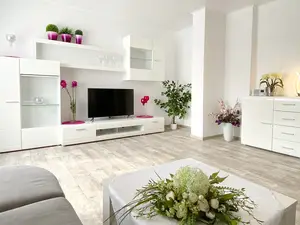Die Wohnungen befinden sich in Wald- und Strandnähe, 5 bis 15 min. zum Strand und haben einen separaten Eingang mit Terrasse oder Balkon. Im Wohnzimmer steht Ihnen eine gemütliche Eckcouch zum Entspannen zur Verfügung. Diese kann nach Bedarf auch als Aufbettung genutzt werden und so entsteht für Sie ein zusätzliches großes Doppelbett. Eine Miniküche mit Essecke, Flachbildschirm (SAT), Radio, sowie ein Schlafzimmer mit Doppelbett gehören ebenfalls zur Wohnung. In der Miniküche befindet sich: ein Kühlschrank mit Gefrierfach, ein Zweiplattenherd, eine Spüle, eine Kaffeemaschine, ein Toaster, ein Wasserkocher, eine Mikrowelle sowie reichlich Geschirr. Das Bad ist ausgestattet mit Dusche, WC und Waschbecken. Beheizt werden die Wohnungen mit einer Zentralheizung und stehen Ihnen somit ganzjährig zur Verfügung. Selbstverständlich brauchen Sie keine Bettwäsche mitzubringen und ein Kinderbett und ein Kinderhochstuhl stehen Ihnen auch zur Nutzung bereit.
