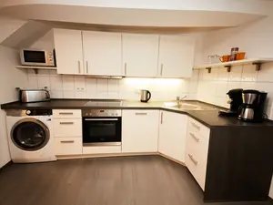 Des Weiteren finden Sie eine große Küche mit kompl. ausgestatteter Einbauküche und Essbereich.