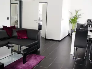 Der 3,5 qm große Eingangsbereich des Appartements bietet Ihnen neben einem Ganzkörperspiegel einen zentralen und direkten Zugang zum Schlafzimmer, Badezimmer sowie dem Wohnzimmer. Von hier aus können Sie auch ganz bequem Ihre Gäste über die Türsprechanlage einladen.