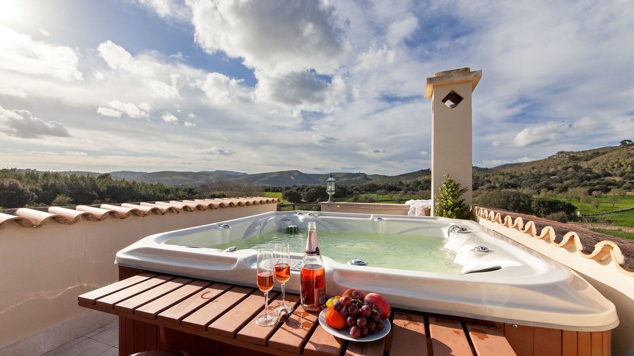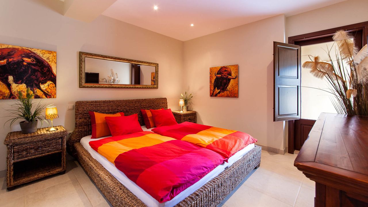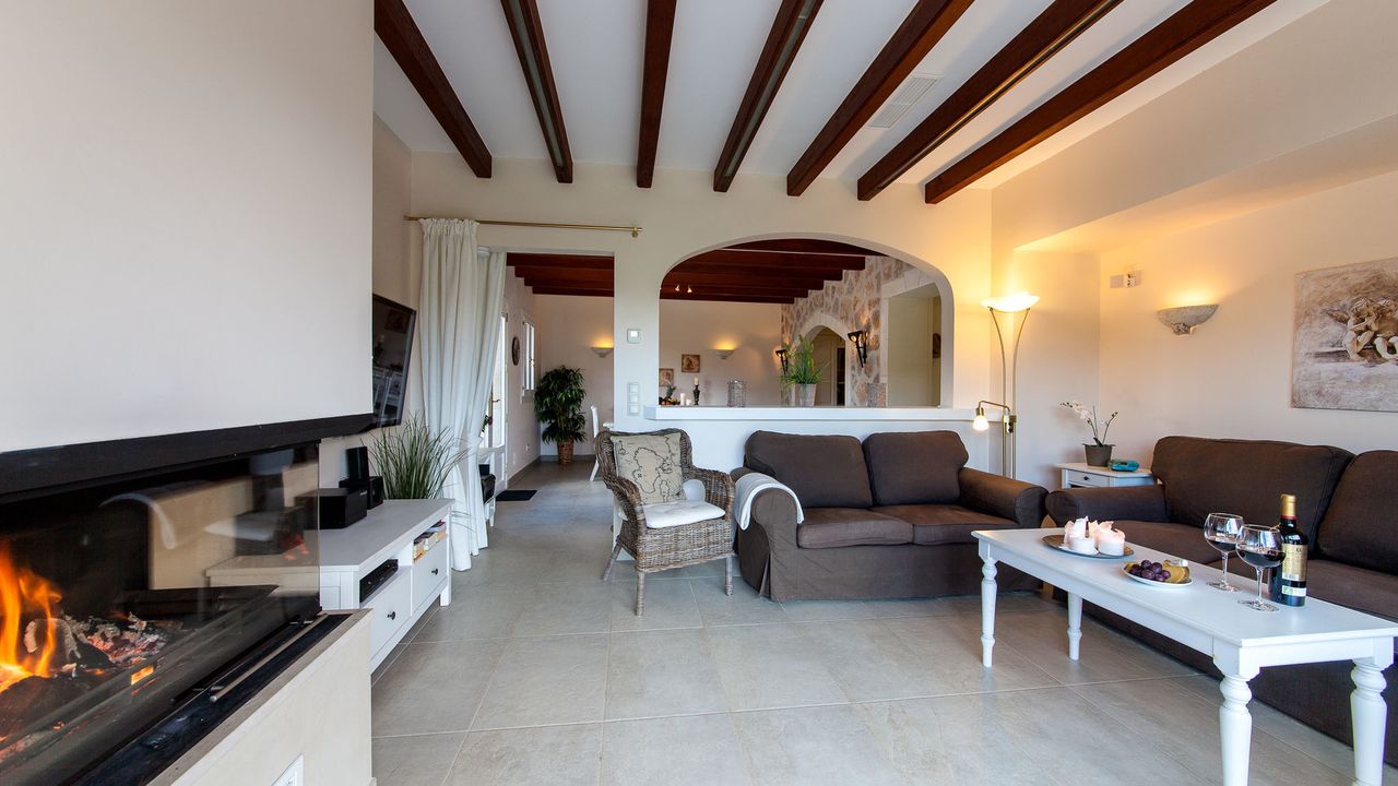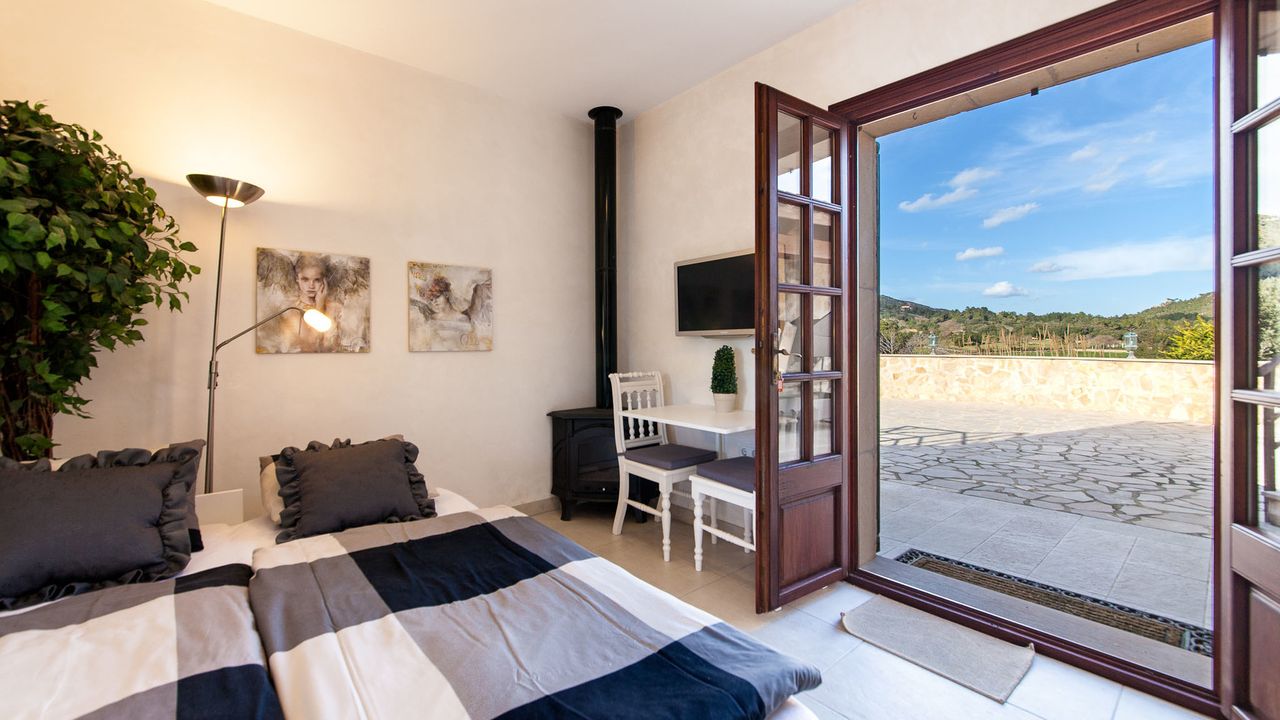 Alle Schlafzimmer und die Wohnstube verfügen über Klimaanlagen (warm/kalt), die gesamte Finca ist mit Fußbodenheizung ausgestattet – so ist sie im Sommer angenehm kühl und im Winter wohlig warm.