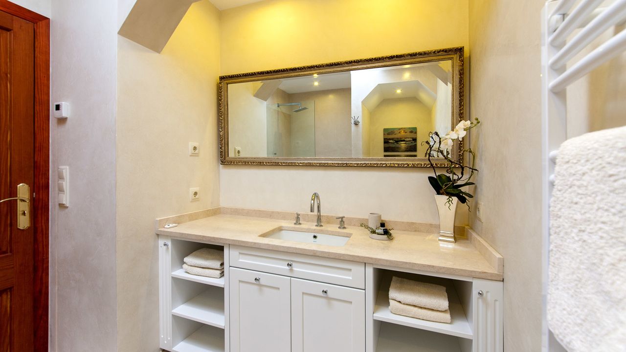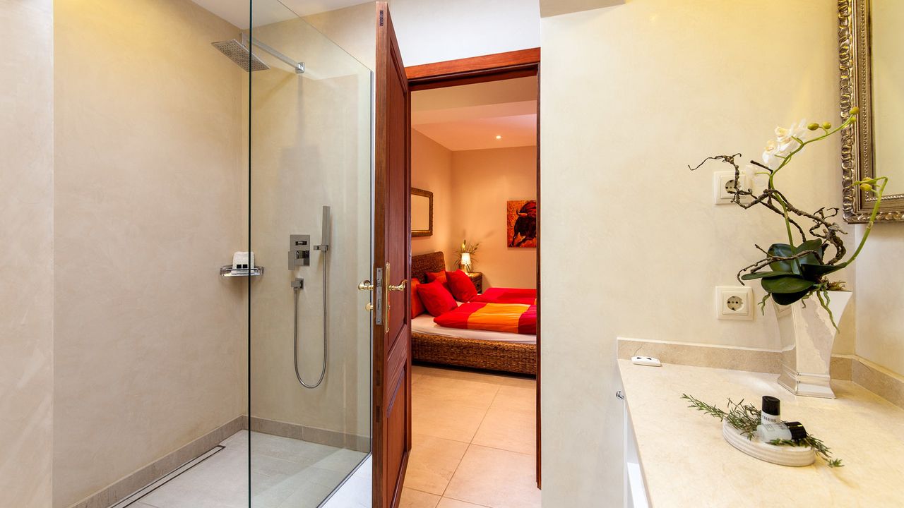 Das zweite Bad en Suite verfügt ebenfalls über eine ebenerdige Dusche, WC und Waschbecken.
