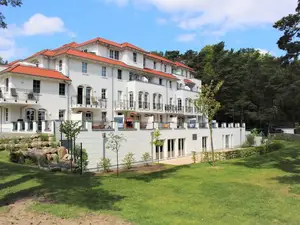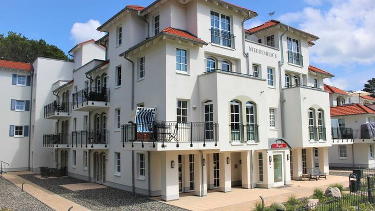 Das Ostseebad Baabe liegt im südöstlichen Teil Rügens auf der Halbinsel Mönchgut. Sanfte Hügel fügen sich zwischen Seen und Bodden in die idyllische Heidelandschaft ein. Das Haus Meeresblick liegt inmitten der Dünen direkt am Ostseestrand. Teilweise ist es von einem Kiefernwäldchen umgeben. Auch der Hundestrand ist nicht weit entfernt. In direkter Nähe ist der Kurpark von Baabe. Der kleine, lauschige Hafen der Ortschaft ist fußläufig zu erreichen. Von dort starten Schiffsausflüge in die Boddenlandschaft.Gegenüber der Ferienresidenz ist eine Ladenzeile inklusive Bäckerei. Nur ca. 400 Meter entfernt liegt die beschauliche Strandstraße mit ihren alten Bädervillen. In unmittelbarer Entfernung befinden sich viele Restaurants und Einkaufsmöglichkeiten.