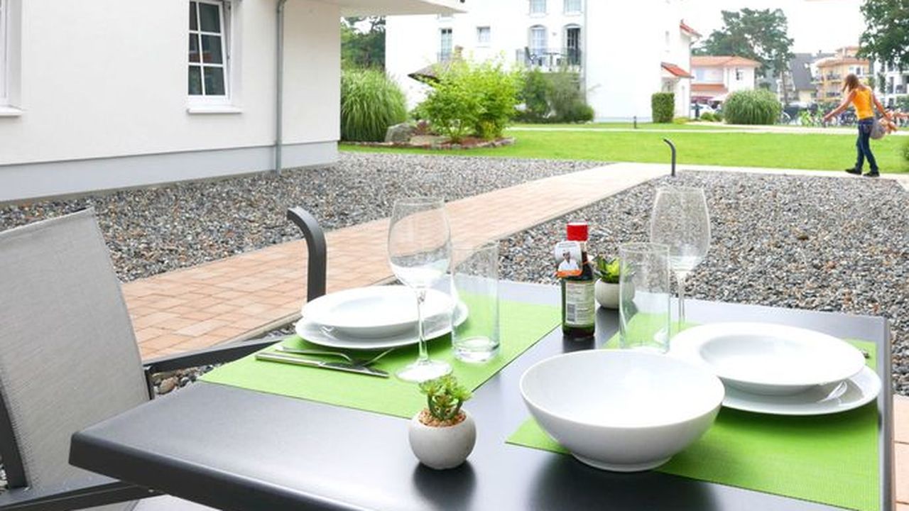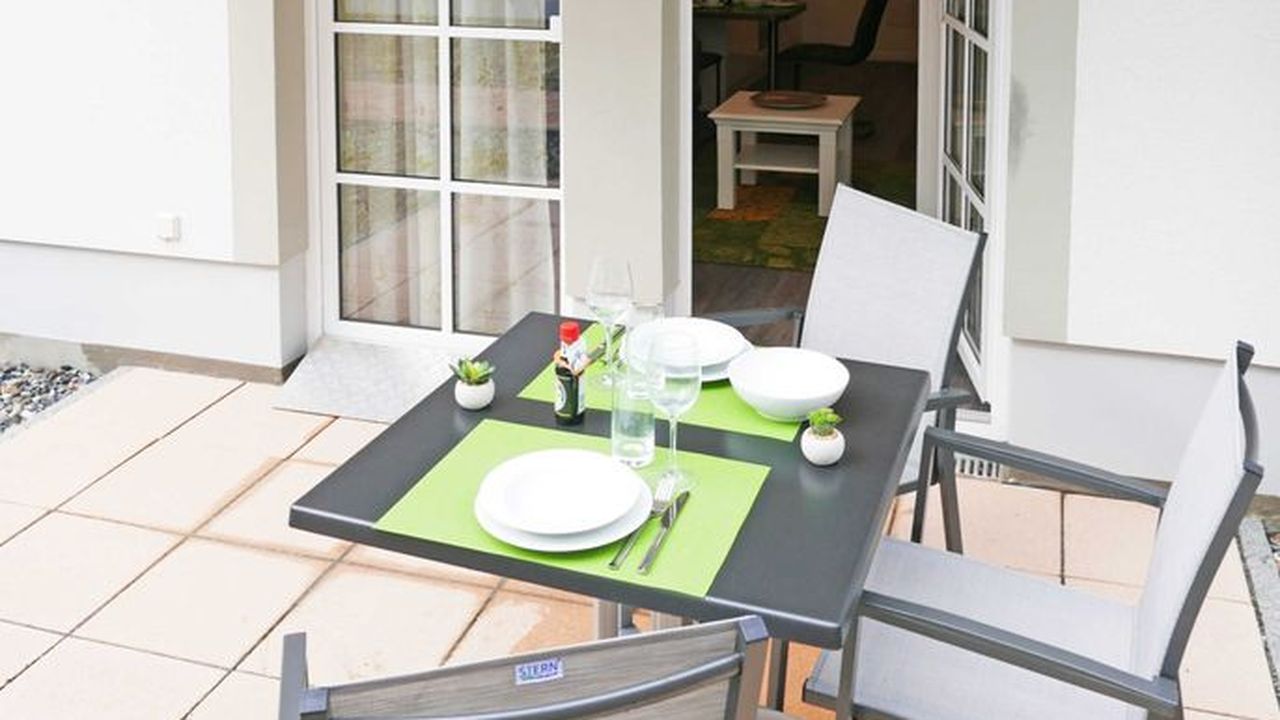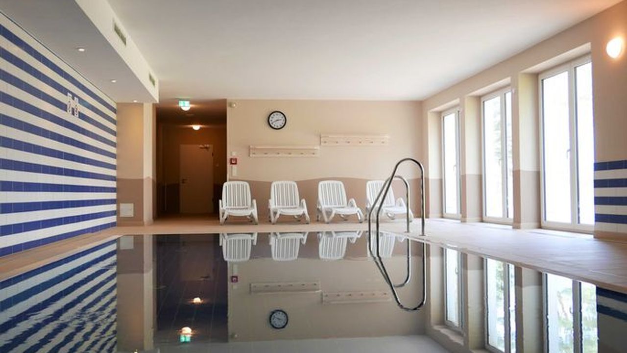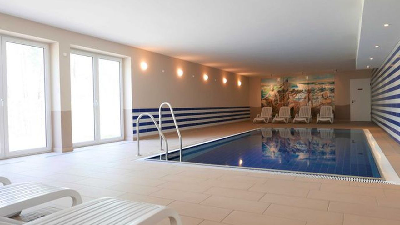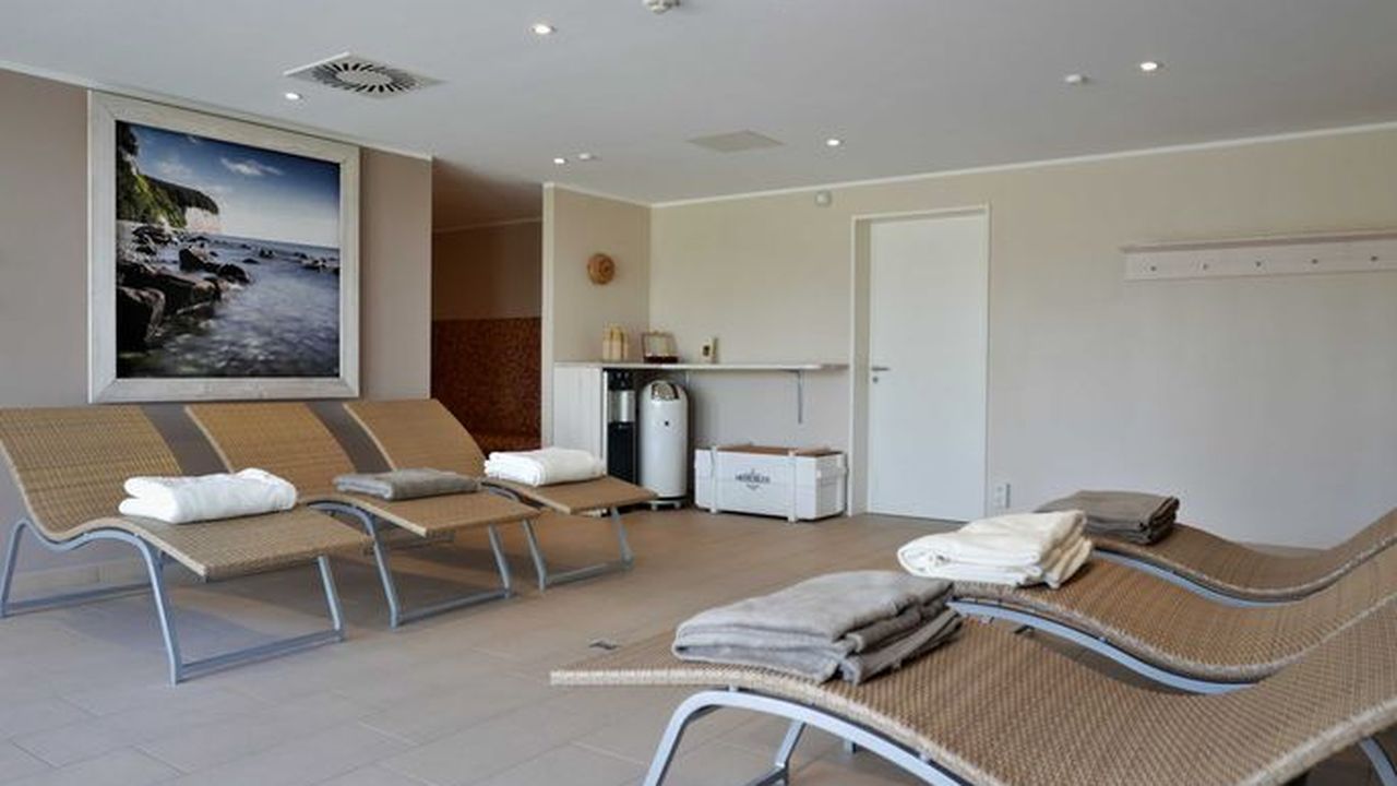 Freundliche 2-Zimmer-Ferienwohnung für 2 Personen mit geräumigem Wohn-/Esszimmer und hochwertigem Boxspingbett im Schlafzimmer.Die Wohnung ist im Haus Meeresblick gelegen, von hier haben Sie einen direkten Zugang zum Strand. Das Haus ist mit einem Fahrstuhl, einer Tiefgarage und einem großen Wellnessbereich mit Schwimmbad (ca. 8,00 m x 4,00 m - 1,35 m tief), zwei Saunen (eine finnische Sauna/eine Bio-Sauna) und einem Massagebereich ausgestattet.