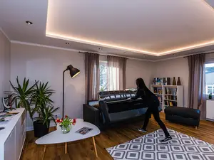 Das großzügige Wohnzimmer lädt zum Verweilen ein.