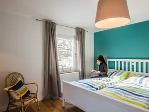 Im gemütlichen Schlafzimmer mit Doppelbett wird Entspannen leicht gemacht.