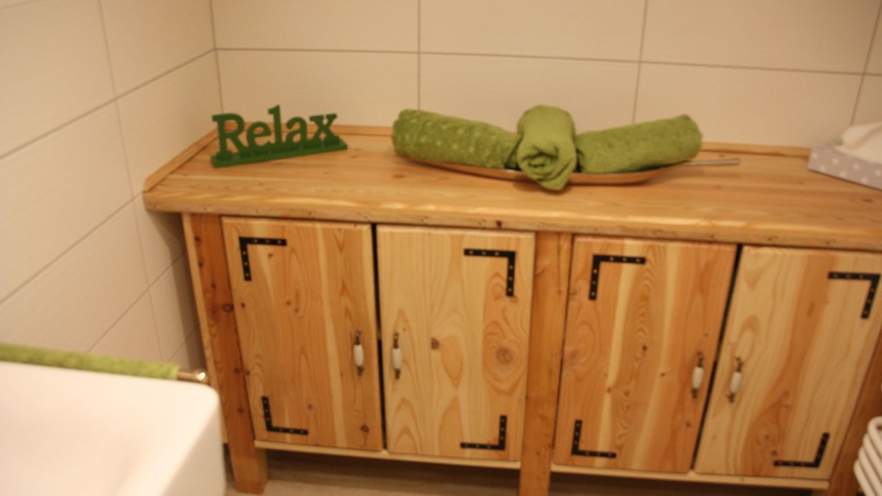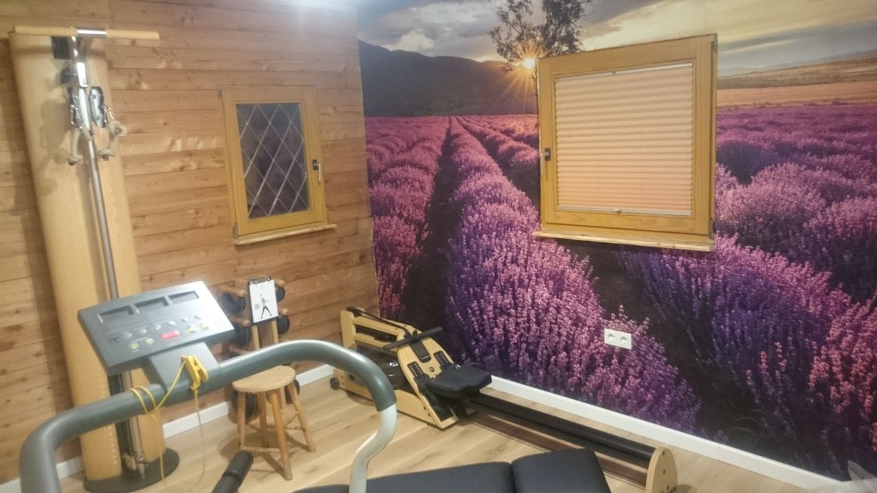 Parken können Sie, direkt am Gebäude, wenige Meter vom eigenen Eingang der Ferienwohnung. Trockenen Fußes erreichen Sie, über die Eingangstreppe, das Highlight der Wohnung, die fast 30 qm große Sunset Lounge, die im orientalischen Stil eingerichtet ist. Neben einer 7 qm großen modernen Sauna, die über beleuchtete Himalaya-Salzsteine bzw. einer Musikanlage zur Tiefenentspannung verfügt und über ein Touchscreen Display kinderleicht gesteuert wird, gibt es einen Indoor Relaxbereich und einen kleinen Tea Corner. Von der Sunset Lounge kommt man in den im Vintage Stil eingerichteten Wohnbereich bzw. auf die ca. 20 qm großen uneinsehbaren (auch ohne Textilien), vollkommen im Grünen liegenden Südterrasse. Nach dem Saunagang können Sie dort im freien Duschen und sich danach von der Sonne abtrocknen lassen. Frühstücken können Sie, nach vorheriger Anmeldung, nebenan im Landgasthaus Janshen, allerdings je nach Jahreszeit nicht an jedem Tag. Die Anmeldung können wir auch für Sie übernehmen. Hunde bis 50 cm Widerristhöhe dürfen in die Ferienwohnung. Über 50 cm können außerhalb der Ferienwohnung in einem überdachten, abschließbaren Raum verbringen. Zwei Fahrräder sind kostenlos nutzbar. Fitnessraum mit Nohrd Geräte aus HolzFitnessraum: Ist im Gebäude und kann zu jeder Zeit genutzt werden. Schlüssel der Ferienwohnung passt auch für die Tür des Fitnessraumes