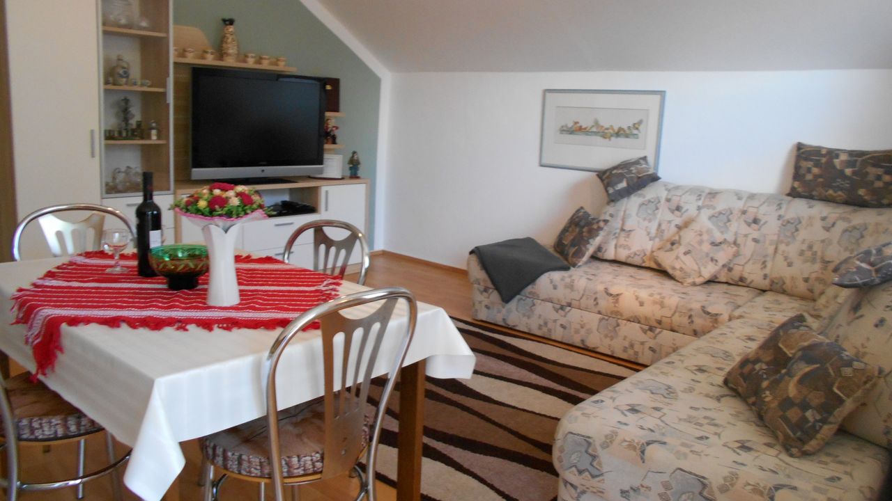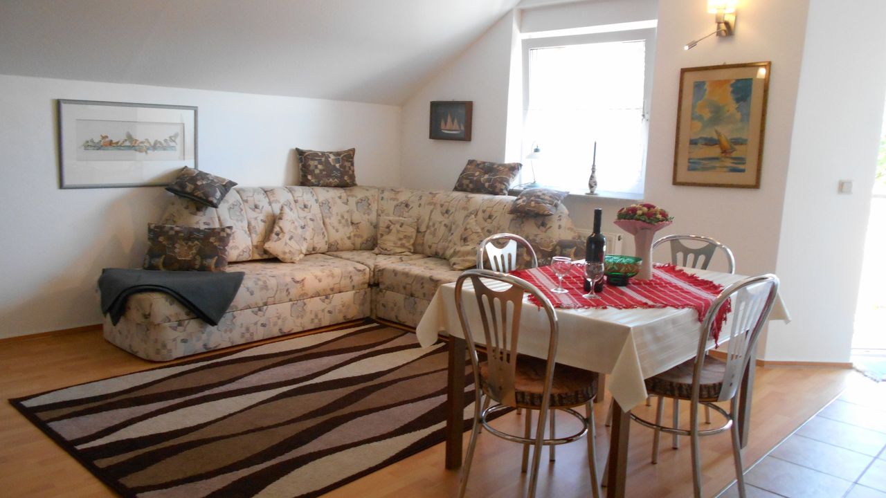 DIe Schlafcouch im Wohnzimmer bietet Platz für 2 Gäste