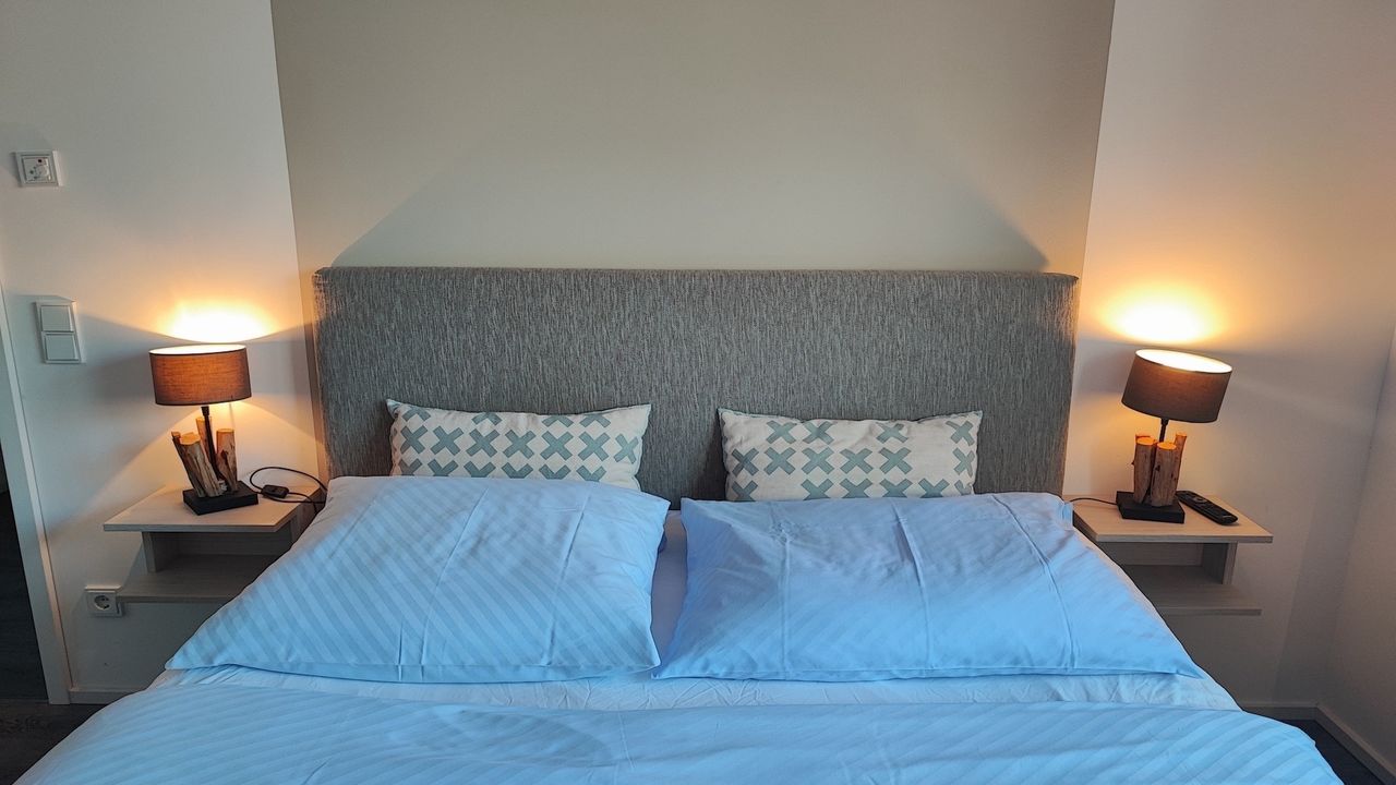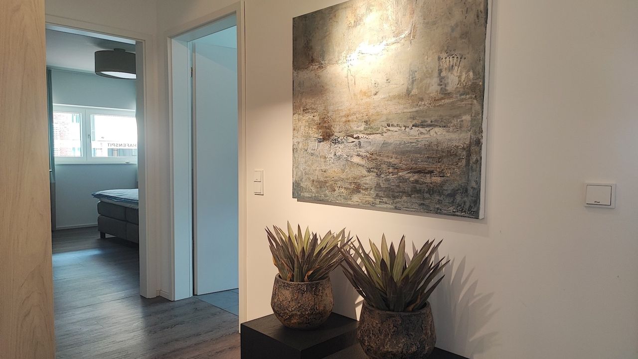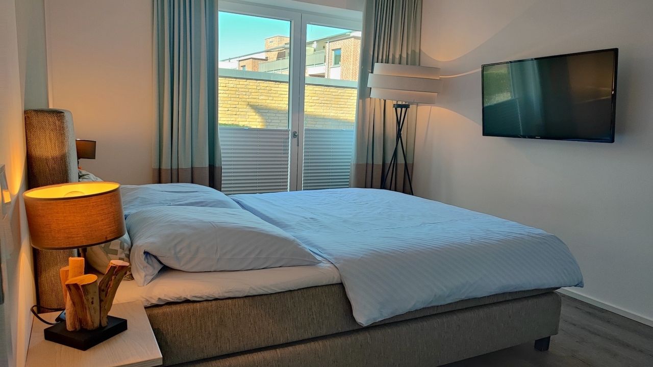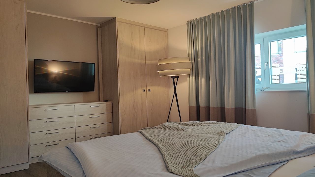 Die Ferienwohnung "Hafenspitze" (Bj. 2018, 4-Sterne) liegt nur 25m von der Hafenpromenade entfernt, auf der einen Seite schließen sich der Strand und seine lange Promenade an, auf der anderen Seite können Sie das Stadtzentrum und die naheliegende Gastronomie in wenigen Minuten erreichen.Der stilvoll eingerichtete, großzügige Wohn- und Essbereich, mit voll ausgestatteter Küche, lädt zum gemeinsamen Entspannen und Kochen ein! Die Ferienwohnung verfügt über einen Balkon mit wunderschönem Blick auf das Hafenbecken. Beide Schlafzimmer wurden mit modernen Doppelbetten (180x200 und 160x200), Kleiderschränken und TV-Geräten ausgestattet. Die Schlafzimmer bieten somit die gewünschte Erholung! Die Duschen in beiden Badezimmern sind ebenerdig. Die komplette Wohnung ist mit Vinylboden und Fußbodenheizung ausgestattet. Die im Hochparterre des Appartementhauses gelegene Ferienwohnung kann ''barrierefrei'' über einen Aufzug, mit direktem Zugang aus der Tiefgarage erreicht werden.