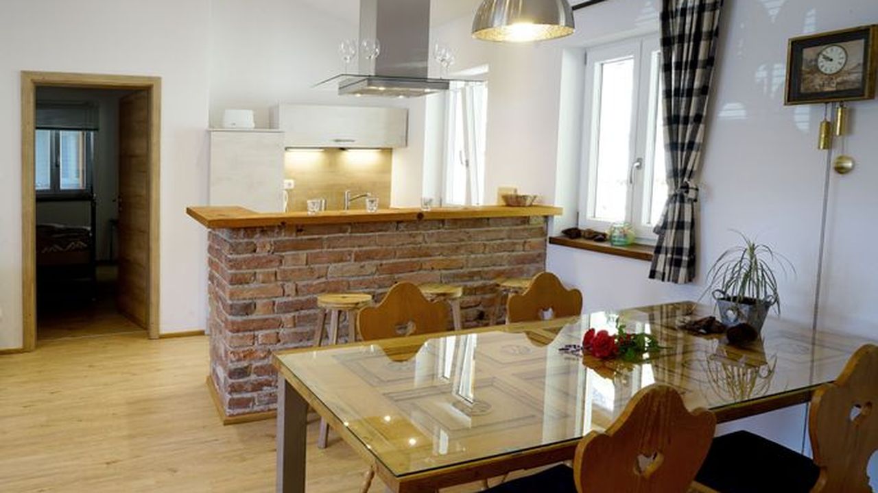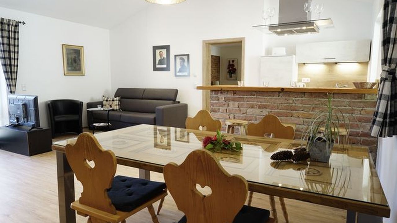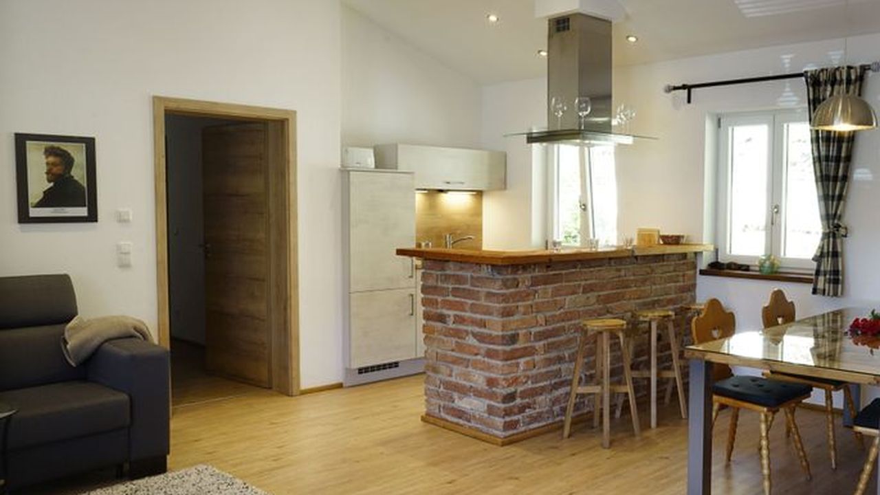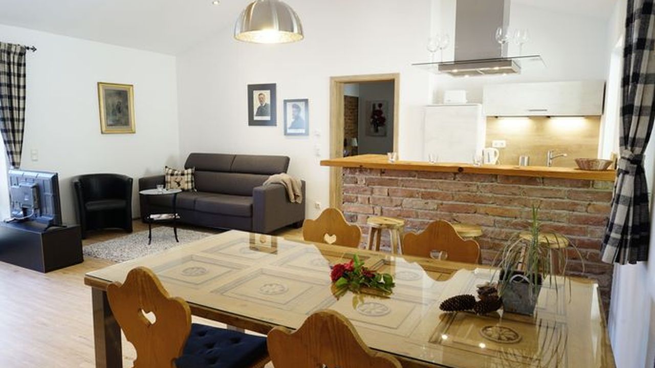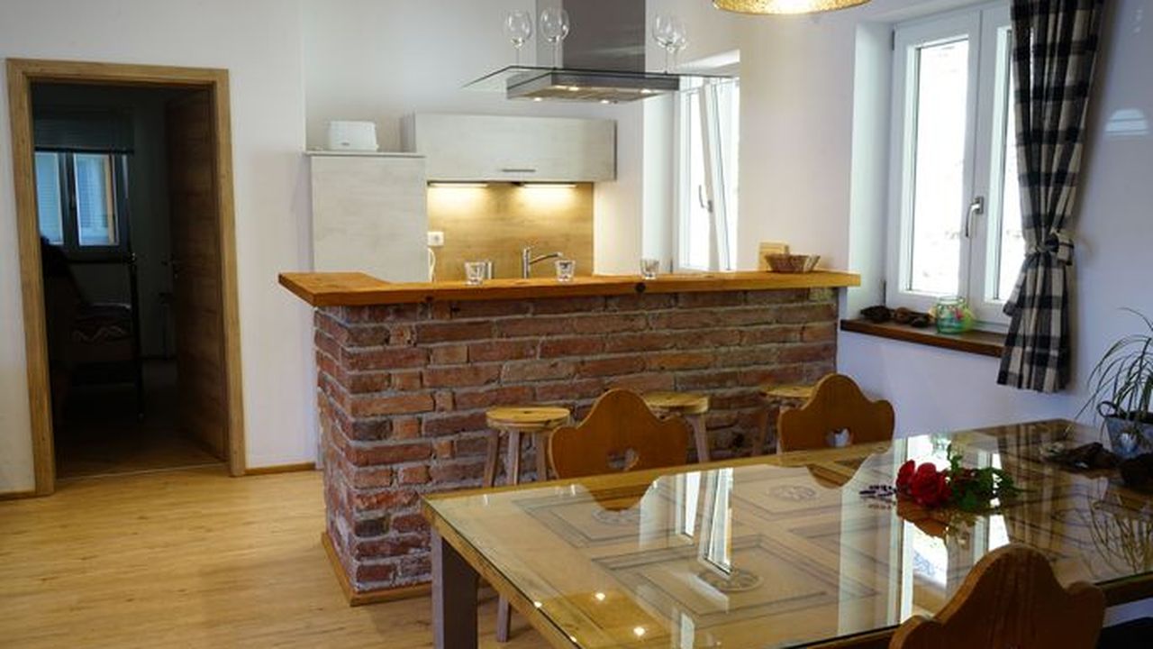 Hochwertige, klassische Einrichtung, Fußbodenheizung in der gesamten Wohnung, hochwertige Badausstattung mit bodengleicher Dusche, 1 Schlafraum mit Doppelbett, Babybett steht zur Verfügung, Balkon und Küche mit Geschirrspüler.Wunderschöne Ferienwohnung ( 50qm ) im 1. Stock mit Blick auf den Wallberg. Diese ist über eine Außentreppe separat erschlossen und hat eine große Terrasse. Der offene Giebel erzeugt ein großartiges Wohngefühl und ein hochwertiger Deko-Kamin bringt am Abend die Gemütlichkeit. Neu ab 2023: hochwertiges großes Sofa mit verstellbaren Kopfstützen und 50 Zoll 4K Fernseher.