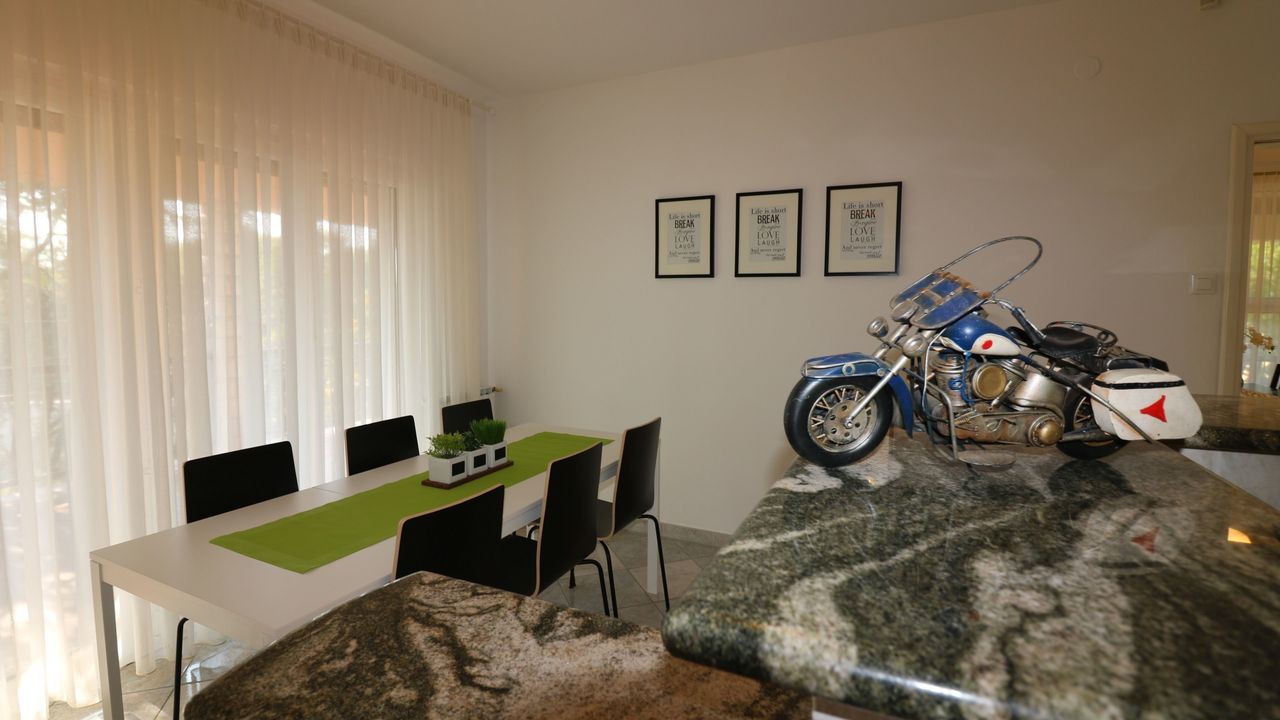 Die Anlage Residence Lorena liegt im Ortsteil Stancija Portun, nur 2,5 km von Porec und der näeherste Strand entfernt. Das Einkaufzentrum Kaufland und LIDL ist ca 150m entfernt.Auf einem 5000m2 großem umzäuntem Grundstück bietet die Anlage schönes Garten mit Blumen und Olivenbäumen, überdachte Parkplatz für mehrere Autos, Grillgemauert mit Gartenmöbeln und separat von Grün umgeben 50m2 großen Pool mit Liegen. Der Besitzer wohnt im Erdgeschoss des Hauses.