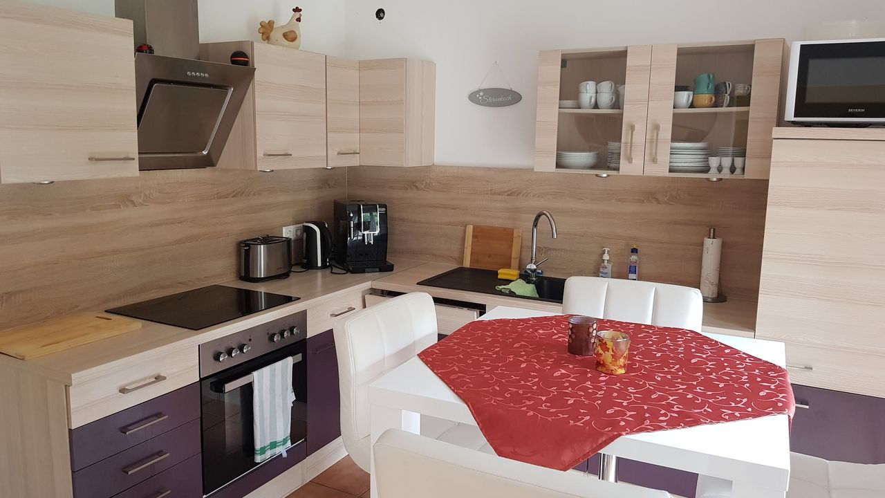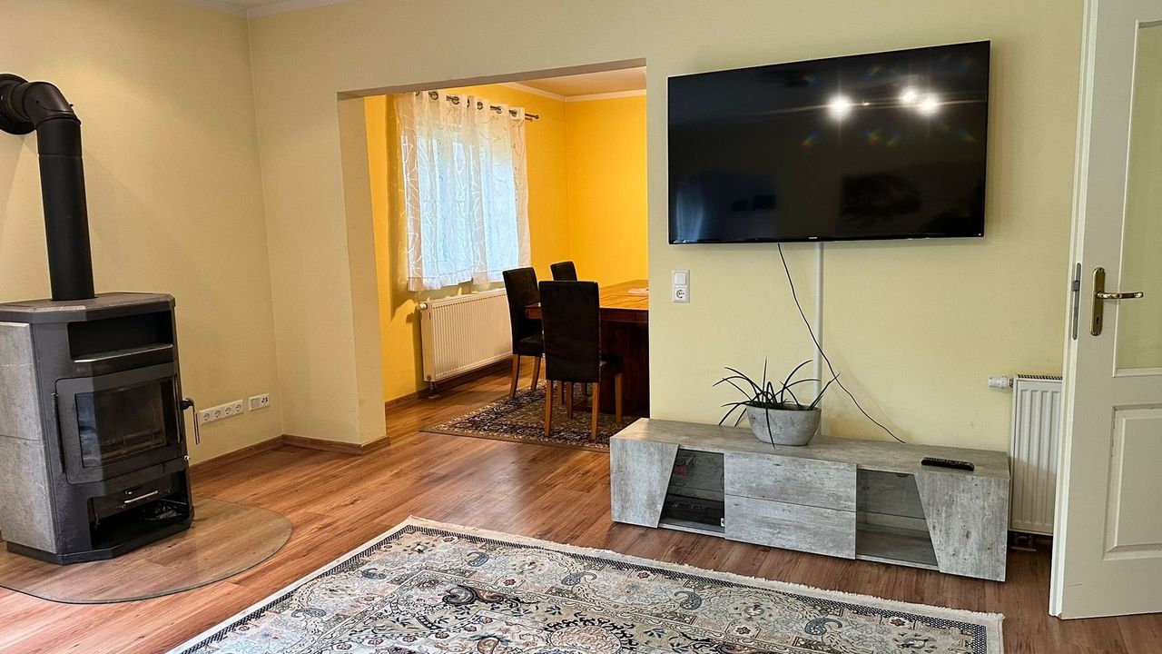 WLAN für unsere IT-Gäste inklusive (50MBit), jedes Schlafzimmer als auch Wohnzimmer mit großem Flachbildschirm (Satelliten-Fernsehen), großer Eßbereich für 6 Personen, Küche mit Barhockern und Eßplatz zusätzlich, 2 Bäder, zusätzlich WC im Obergeschoß.