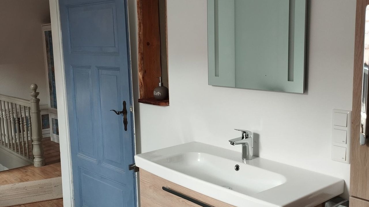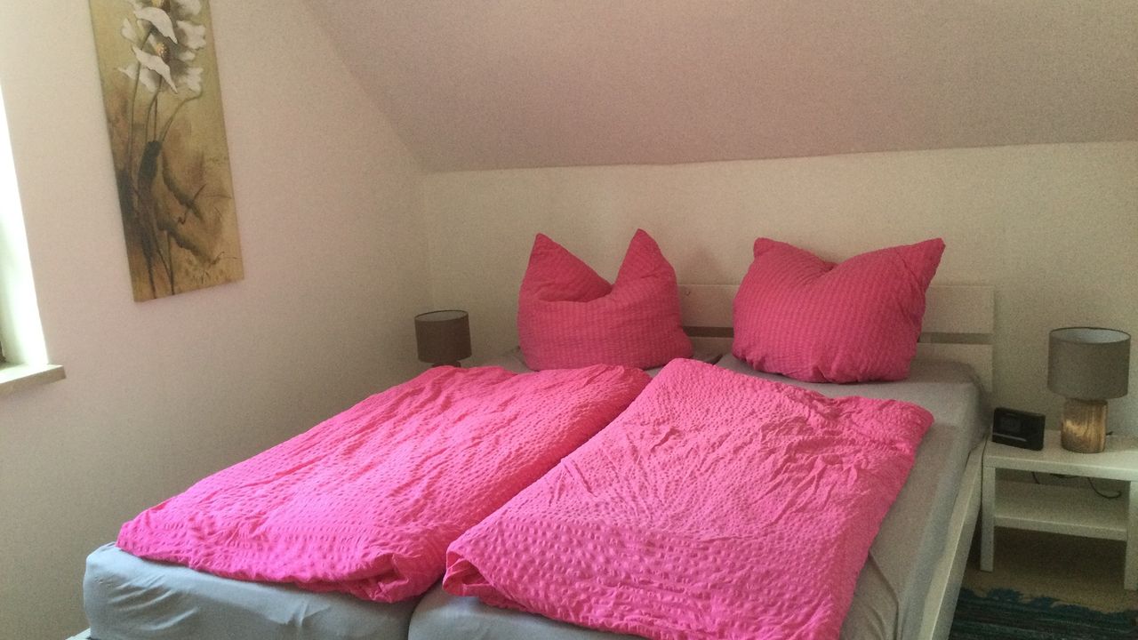 Für Paare, Familien (auch mit Kleinkind), mit Hund oder ohne, Wanderer, mit Fahrrad, E-Bike oder MotorradSie möchten sich auch in Ihrem Urlaub wie Zuhause fühlen? Dann seien Sie herzlich Willkommen in diesem modern und liebevoll eingerichteten Ferienhaus. Wählen Sie zwischen ruhigen Stunden auf der Terrasse mit Blick in den Wald oder Entspannung mit einem Buch in der "kleinen Bibliothek". Für Kinder gibt es ein gut bestücktes Bastelzimmer, Basketball und einen Bollerwagen! Genießen Sie die Ruhe, lassen Sie sich von Vogelgezwitscher wecken. Die Wohnküche lässt keine Wünsche offen, es besteht eine direkte Verbindung zur Sonnenterrasse. Die ebenerdige Dusche lädt mit dem Spruch "Hier wird der Froschkönig zum Prinz" zu Überraschungen ein. Handtücher und Bettwäsche sind inclusive, ebenso die Endreinigung. Nutzen Sie für 2 Personen die untere Etage oder ab 3 Personen das gesamte Ferienhaus. Ein Kinderhochstuhl und ein Kinderreisebett stehen ebenfalls zur Verfügung.