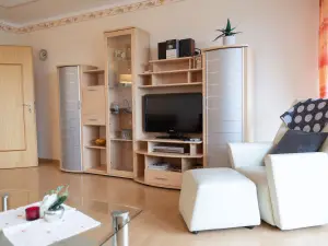 NR-Ferienwohnung Typ A im Terrassenpark. Die Wohnungen sind geeignet für bis zu 4 Personen (teilweise 5. Person auf Anfrage möglich) 1 Wohn-, Schlafraum + mit Schrankbett oder Schlafsofa, 1 Separates Schlafzimmer (durch Vorhang o. Schiebetür getrennt) mit Einzelbetten oder Doppelbett,Einbauküche mit Kaffeemaschine, Toaster, 3-Plattenherd +Backofen, Essecke, TV (Satellit), Radio, z.T. Telefonanschluß), Bad, WC, Haartrockner