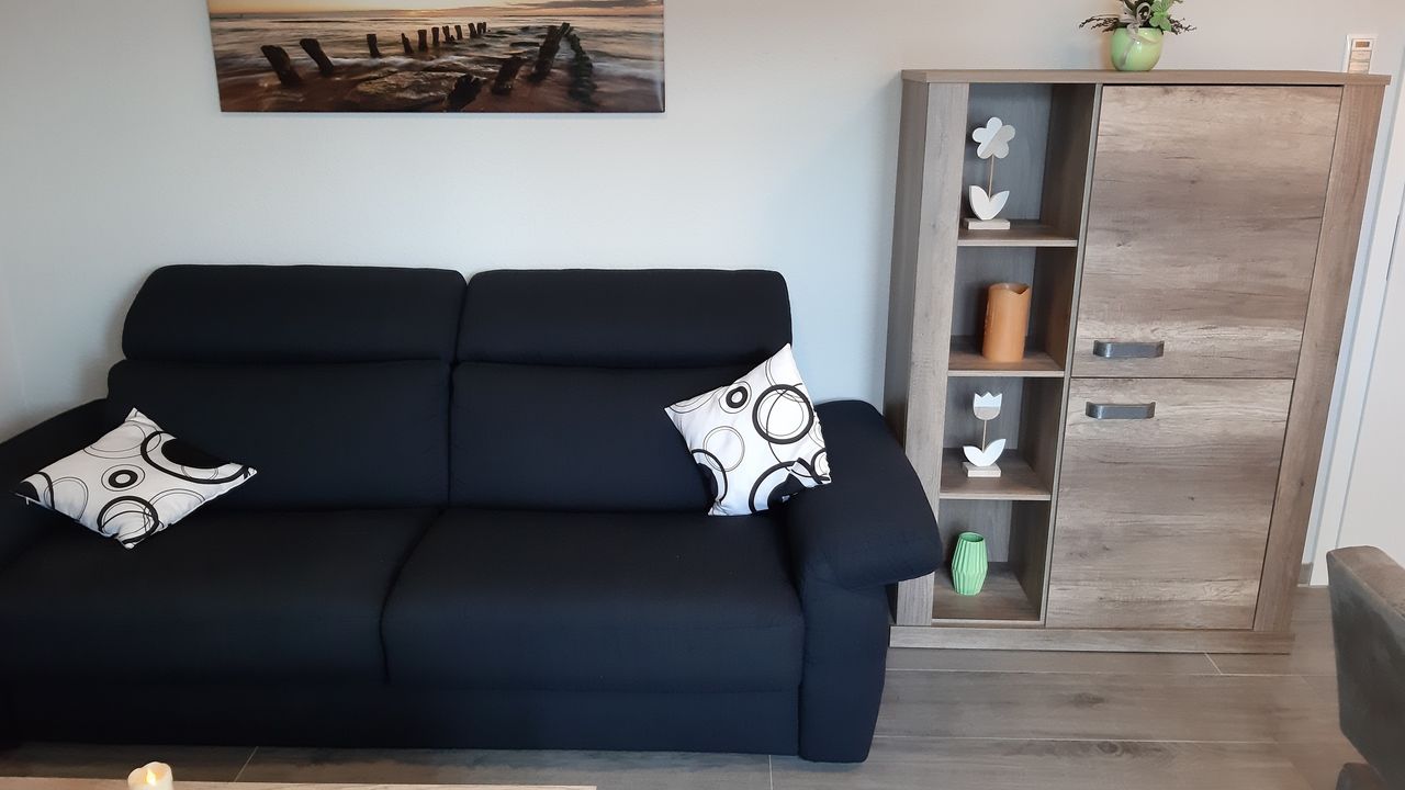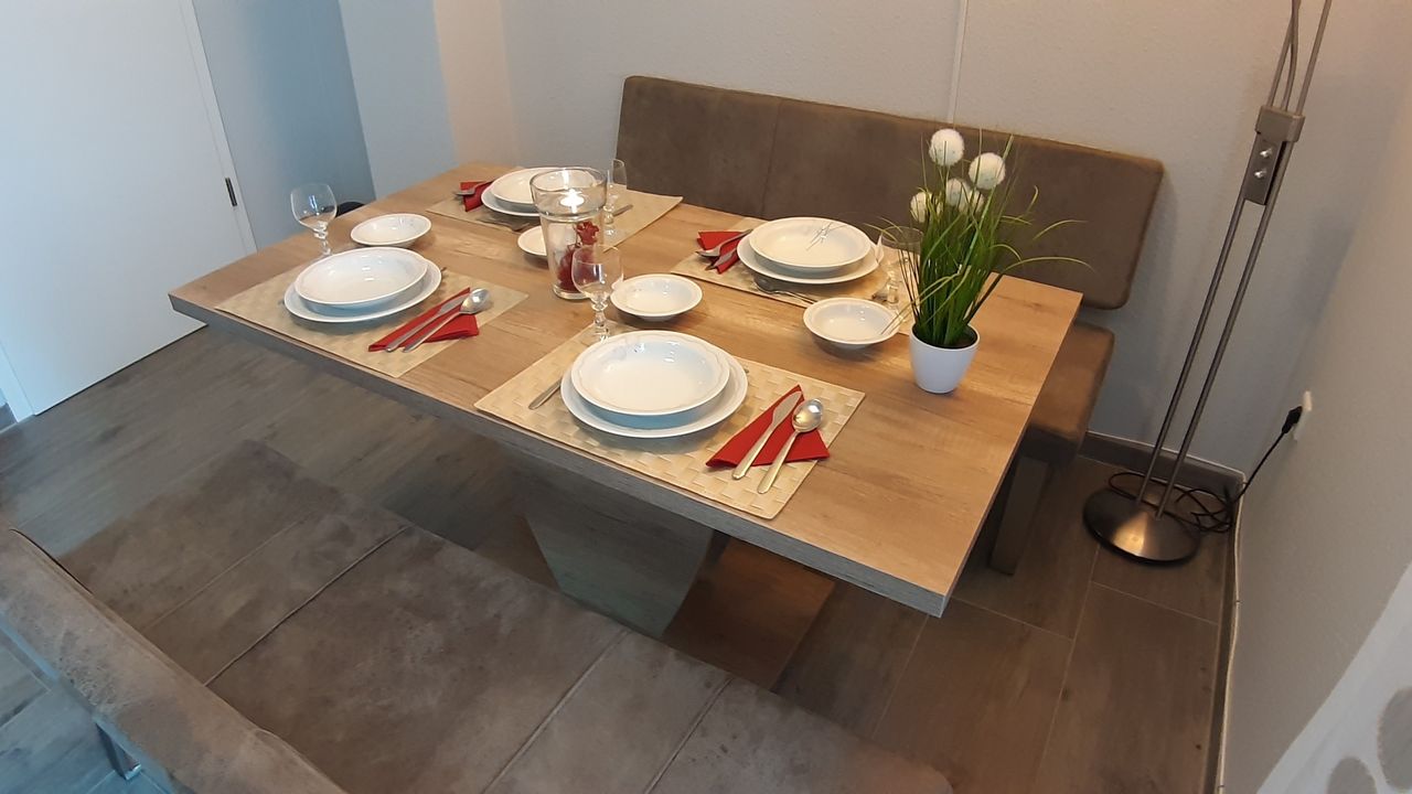 Die Küche ist mit einem Backofen, einer Mikrowelle, einem Geschirrschüler, einem Kühlschrank m. Gefrierfach, einer Kaffeemaschine, einer Senseo-Padmaschine und genügend Geschirr komplett ausgestattet.