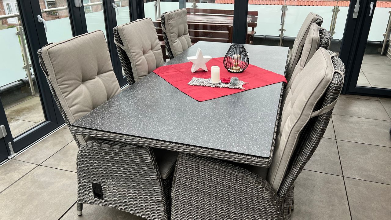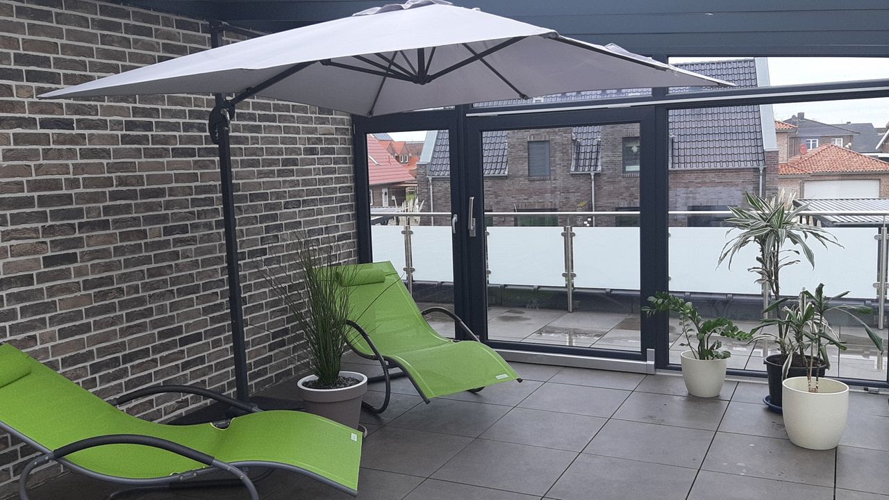 Der Wintergarten mit elektrischer Beschattung lädt ganzjährig mit seinem wunderschönen Ausblick auf den Kanal , den Sonnenliegen, einer Sitzgarnitur, einem Sonnenschirm und einem Gasgrill zum Verweilen ein.