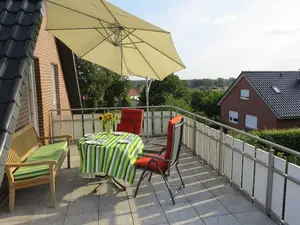 Herzlich Willkommen in unserer Ferienwohnung Am Kleeberg. In bester Lage in der Mitte von Tecklenburg-Brochterbeck liegt die Ferienwohnung mit fantastischem Blick auf den Teutoburger Wald und weit ins Münsterland. Im Jahr 2009 wurde das Wohnhaus renoviert und im komplett neuen Dachstuhl eine Wohnung errichtet. Die helle und gut eingerichtete Nichtraucher-Ferienwohnung mit ca. 60 m² bietet Platz für 2-3 Personen oder 2 Erw. + 2 Kinder (1 Schlafzimmer mit Doppelbett 2 x 2 m und großem Schrank, 1 kleiner Schlafraum mit Bett 1,40 x 2 m, verstellbare Lattenroste, gute Matratzen) inkl. Bettwäsche. Geräumiges Wohnzimmer mit Sitzecke und Esstisch (SAT-TV, WLAN, Radio, CD, USB). In der Einbauküche mit Essplatz stehen für die Zubereitung der Mahlzeiten Herd m. Backofen, Kühlschrank m.Tiefkühlfach und eine Mikrowelle, Kaffeemaschine mit Filtertüten, Senseo Kaffee-Padmaschine, Teekanne, Wasserkocher, Toaster, Handmixer ausreichend div. Geschirr, Besteck und Gläser sowie sonstige Küchenutensilien zur Verfügung. Die Dusche/WC hat Handbrause und eine Regendusche, Fön, Hand- und Duschtücher sind inkl. Auf dem großen Balkon mit Gartenmöbeln können Sie den Ausblick und die Sonne genießen. Fußböden: Parkett und Fliesen, PKW-Stellplatz auf dem Grundstück. Mindestens 3 Übernachtungen (keine Haustiere)