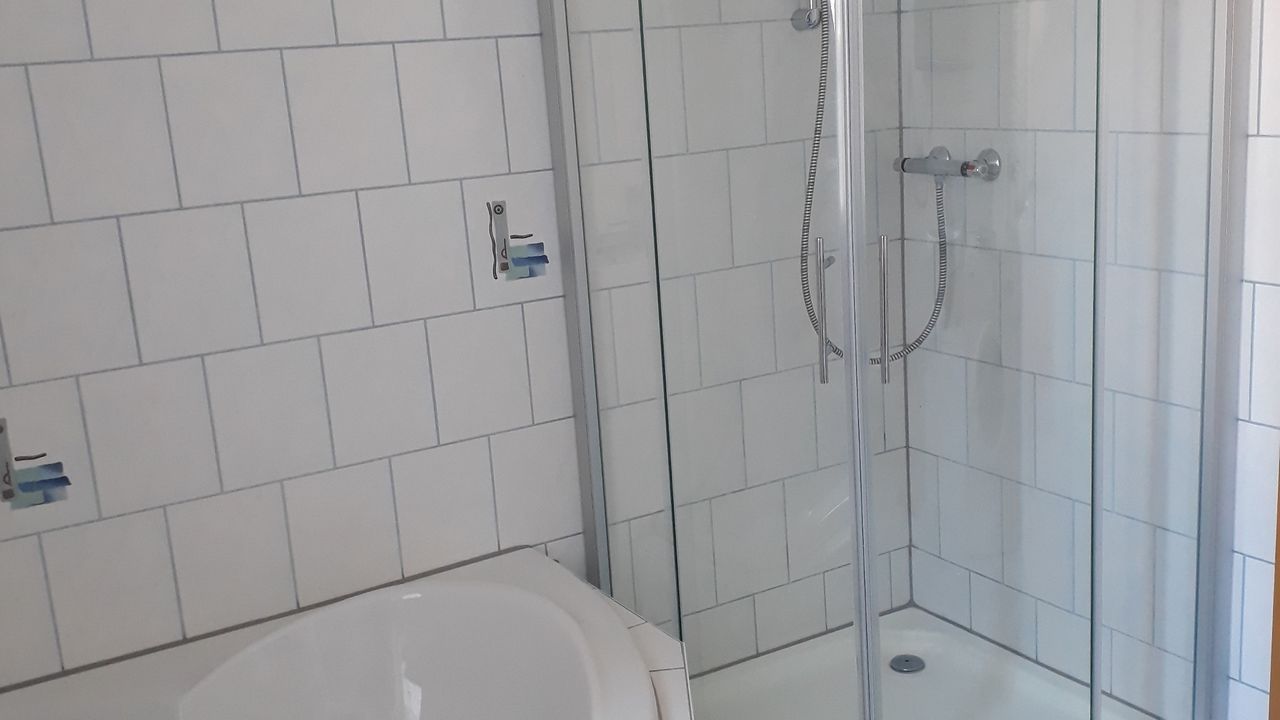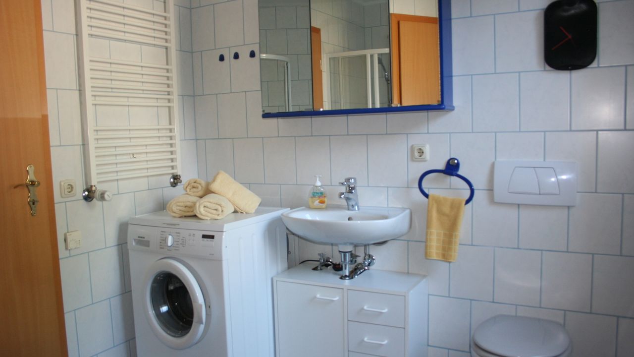 -Bad mit Badewanne , Dusche und WC , Waschmaschine ( gegen Gebühr )