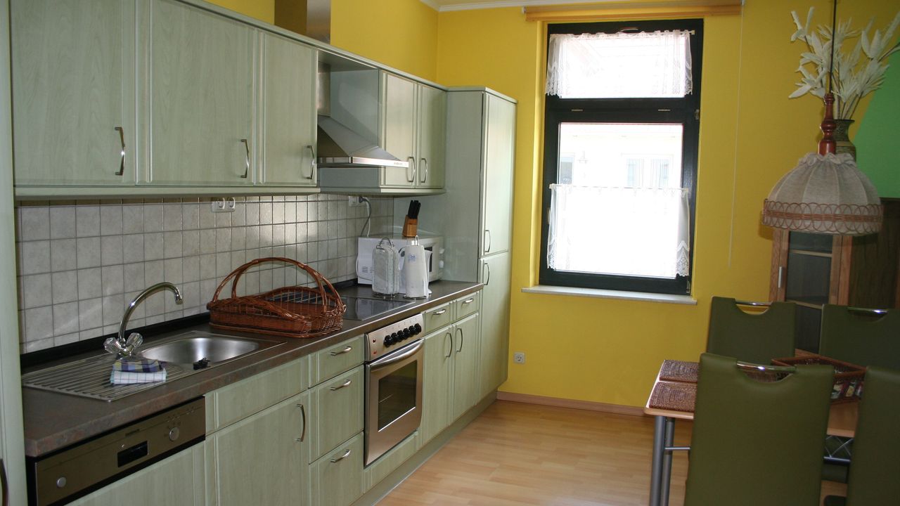 -Komfortküche inkl. Mikrowelle, Kühl- u. Gefrierschrank, Ceranherd inkl. Backofen, Spülmaschine, Toaster, Wasserkocher, Kaffeemaschine usw.