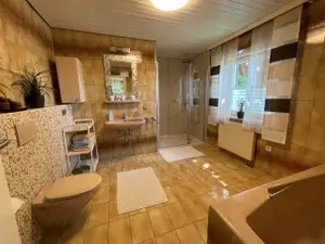 Grosses Badezimmer mit WC, Dusche und Badewanne