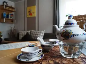 Liebevoll und modern eingerichtete Wohlfühl-Wohnung für 2 Personen in ruhiger, zentraler Lage, 500 m vom Ortskern entfernt, inklusive einer umfangreichen Innenausstattung wie: Küchenzeile mit Spülmaschine, Zweiplattenherd und Mikrowelle, DU/WC, SAT-TV, Radio, CD, separater Eingang, Erdgeschoss, Terrasse, Gartenmöbel, Grill, Waschmaschine, Bettwäsche, Handtücher und Fön. Kleine und mittelgroße Hunde sind erlaubt.Hinweis: Bei Buchungen von Familien mit Kleinkindern muss ein Kinderreisebett selbst mitgebracht werden.