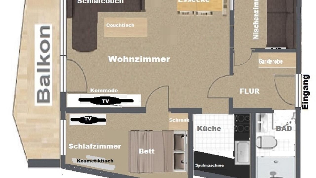 (Wohnzimmer gr. Schlafcouch) mit Kabel TV