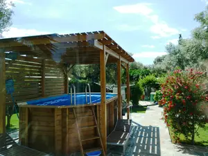 Private Outdoor Oasis: The exterior boasts a beautiful garden, a vegetable plot, comfortable garden furniture, a refreshing shower, grill equipment, and a delightful above-ground pool, exclusively for our guests. Although not directly on the seafront, Esperides Holidays offers the perfect blend of easy access to the beach, grocery stores, and public transportation.