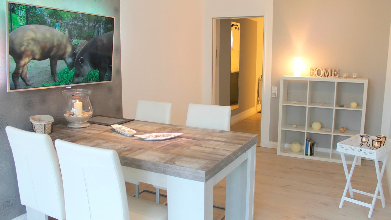 Ihr seid herzlich willkommen in unserer in unserer Wohnung der "Muscheloase" (Wohnung Nr. 2.03) im Appartementhaus "Tannenburg". Sie liegt in der 2. Etage (Aufzug vorhanden) und bietet sehr viel Platz für bis zu zwei Personen. Diese sehr geräumige und sehr geschmackvoll mit allem Komfort eingerichtete Ferienwohnung, liegt direkt an der Strandpromenade - mit hauseigenem Strand- und Promenadenzugang und zugleich nur wenige Gehminuten vom Zentrum entfernt. Sie ist komplett renoviert und wurde mit viel Liebe zum Detail und tollem Ambiente eingerichtet. Freuen Sie sich auf einen wunderbaren Ausgangspunkt für Ihre unvergesslichen Ostseeferien!Bei der hell, modern und hochwertig eingerichteten Wohnung haben wir darauf geachtet, dass es Ihnen an nichts fehlt. Im dem großen und hellen Wohnzimmer mit einem sehr komfortablen Ess- sowie auch Wohnbereich können Sie entspannen und zur Ruhe kommen. In dem Wohnbereich befindet sich ein großer LED Flachbildfernseher.