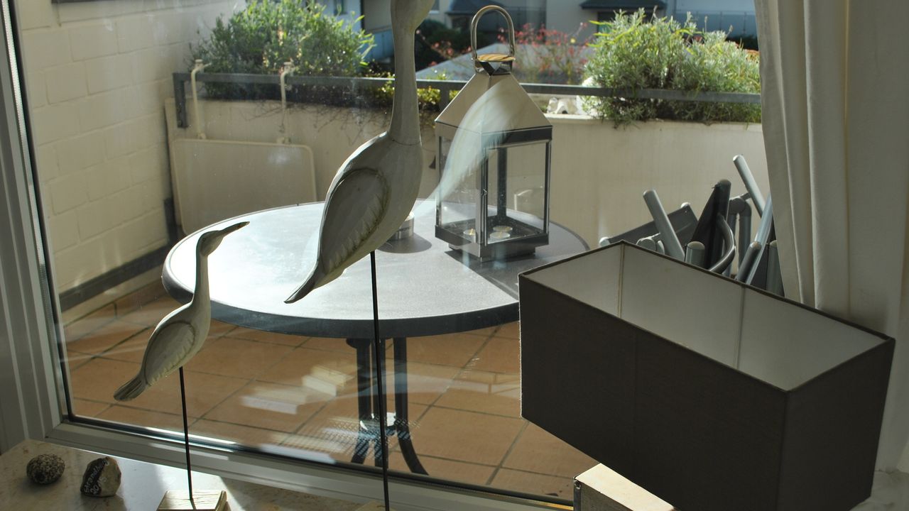 Direkt an den offenen Wohn- bzw. Esszimmerbereich grenzt die schöne und möblierte Loggia mit Markise an der Süd-Westseite mit Teilmeerblick des Hauses an.