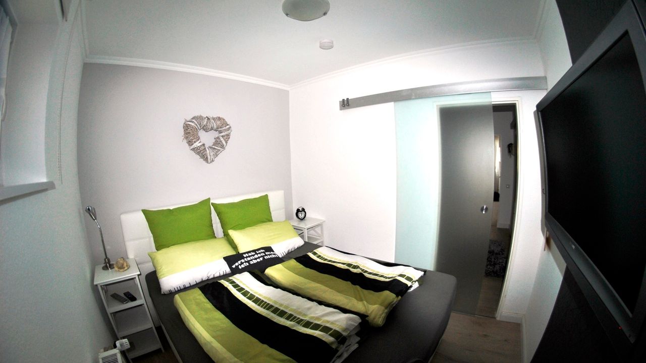 Das separate Schlafzimmer ist mit einem guten Komfort Doppel-Boxspringbett ausgestattet. Es lädt zudem ein, sich mit einem guten Buch zu entspannen oder vor dem 2. großen LED Flachbildfernseher zu relaxen und sich zurückzuziehen. Das schöne Badezimmer ist u.a. mit einer besonders großzügigen Dusche 0,90m x 1,10m ausgestattet.