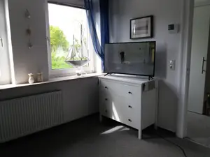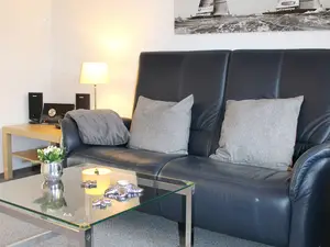 Die Wohnfläche der ca. 42 qm großen Unterkunft verteilt sich auf ein Wohnzimmer, ein separates Schlafzimmer, eine Flur sowie ein Duschbad und eine Küche.Der Wohnbereich ist mit einem 2,5 sitzigem Ledersofa und einem Relax-Fernsehsessel, Flachbild-TV, Stereoanlage mit CD sowie einem Essplatz versehen.