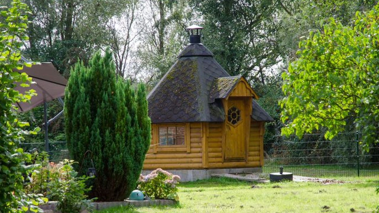 Auf dem ca. 2000 m² großen Naturgrundstück befindet sich auch eine skandinavische Grillkota, die bis zu 12 Personen Platz bietet, und optional zubuchbar ist.