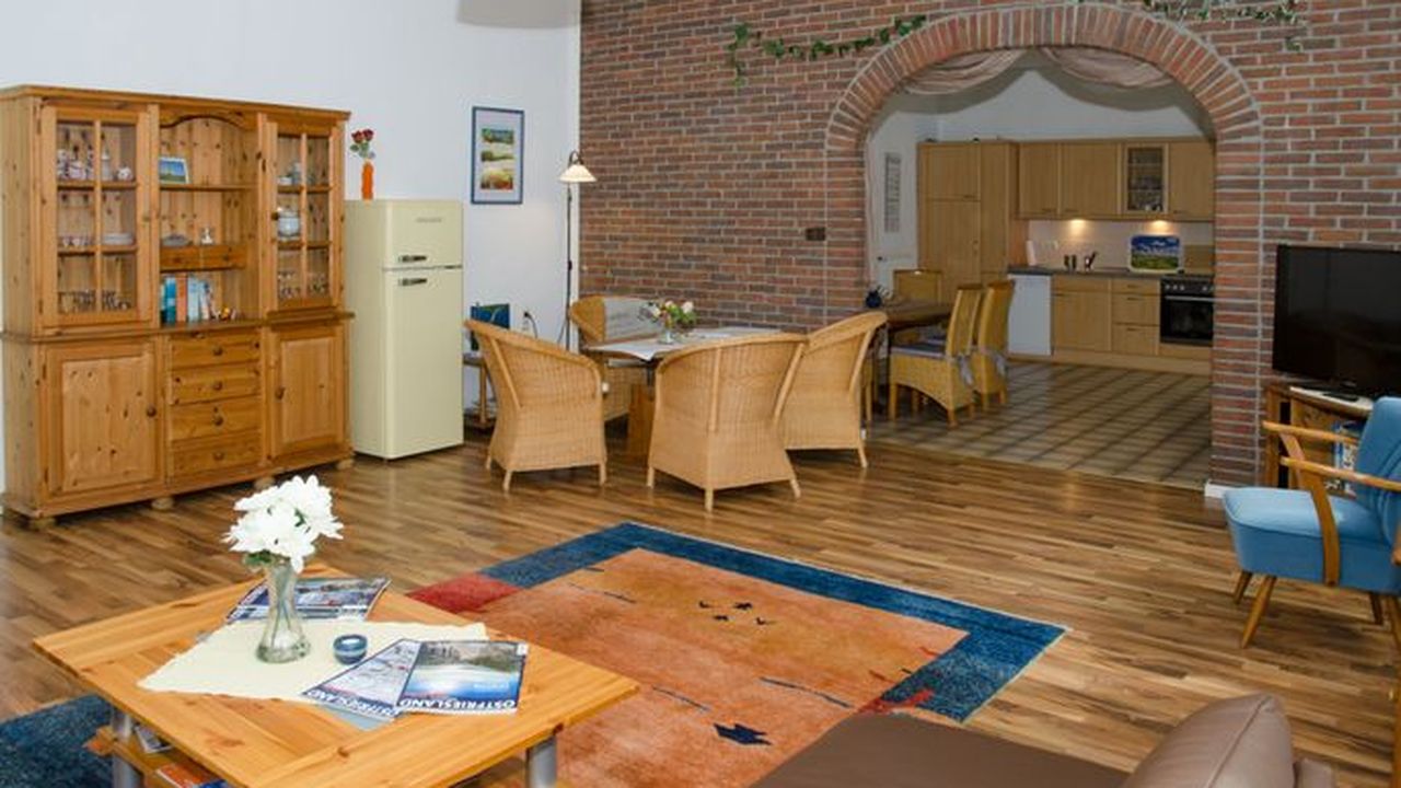 Allein stehendes denkmalgeschüztes Landhaus mit großen Räumlichkeiten und mit besonderem Flair.6 Schlafzimmer, 3 Bäder. Gäste WC und eine große Küche mit Wohnbereich bieten Platz für 12-15 Personen, optimal auch für Gruppen.