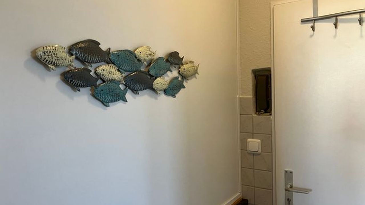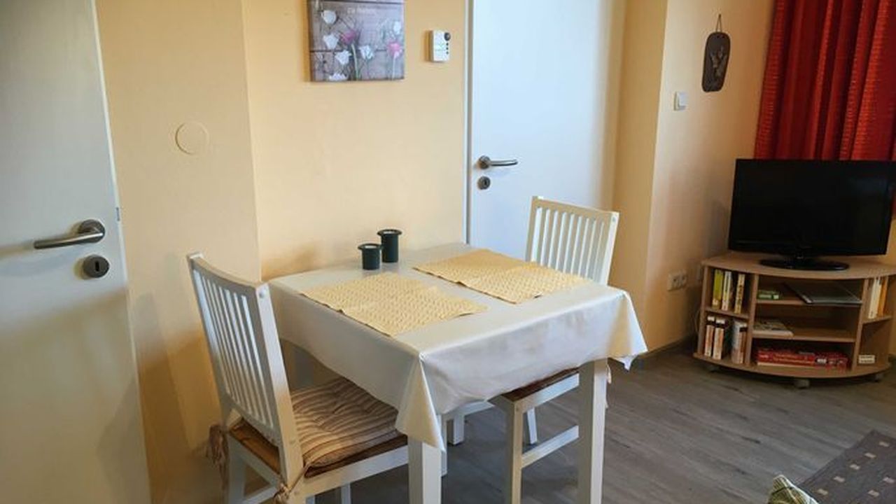 Die Wohnung liegt in Bensersiel, gehört zur Stadt Esens,(ca. 4 km entfernt.) Dort laden eine Fußgängerzone, der schöne Marktplatz zum Verweilen in der Bärenstadt ein. Die Wohnung liegt im EG auf der Nordseite des Hauses Nr.43, es gibt lediglich eine Stufe vor der Haustür.Nach dem Eingangsbereich erreichen sie das Bad mit WC/Dusche, dann finden sie die kleine Küchenecke mit Kaffeemaschine, Toaster, Wasserkocher, Tischbackofen, Eierkocher, Töpfe und Geschirr sind auch ausreichend da. Im anschließenden Wohnraum mit Essecke, gibt es einen Fernseher und CD- Player. Für wohlige Wärme in der kälteren Jahreszeit sorgt eine Infrarotheizung mit Temperaturregler. Im Schlafraum befinden sich zwei Einzelbetten (90x200cm) und ein Kleiderschrank. (Renovierung 2019, Wände, Fussboden, Zimmertüren, Möbel) Neue Matratzen 2022.