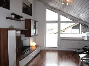 Unsere modern und liebevoll eingerichtete Dachgeschosswohnung (52 qm), mit großem überdachtem Südbalkon und Tiefgaragenstellplatz, verfügt über einen großen Wohnraum mit Schlafcouch, Flachbildschirm und Essecke, ein separates Schlafzimmer, eine kleine Küche, sowie ein Badezimmer mit Dusche/WC. Wir bieten Ihnen zudem kostenfreien WLAN-Zugang.Sonstiges
