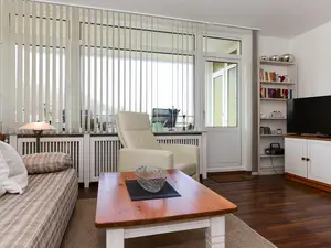 Die Wohnung befindet sich in ruhiger Lage, nur wenige Schritte vom Strand entfernt, und überzeugt durch helle Möbel und dunkles Laminat, die für eine gemütliche Atmosphäre sorgen. Im Wohnzimmer können Sie sich auf modernen Komfort freuen: Ein Flachbildschirm und ein DVD-Player sorgen für Unterhaltung, und das Sofa lässt sich mit wenigen Handgriffen in eine zusätzliche Schlafgelegenheit verwandeln. Der Essbereich für drei Personen fügt sich harmonisch in den Raum ein. Vom Wohnzimmer aus gelangen Sie direkt auf den Balkon, von dem aus Sie den Blick auf die Nordsee genießen können.